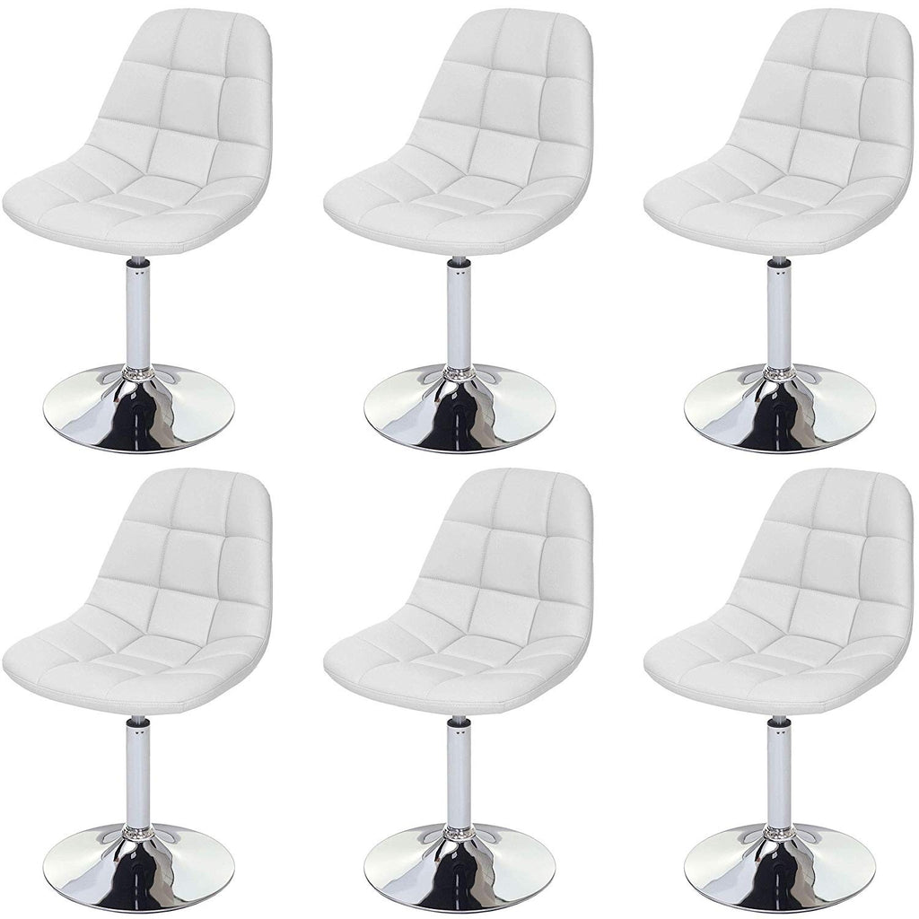 6x chaises de salle à manger en synthétique blanc pied chromé pivotant CDS04625
