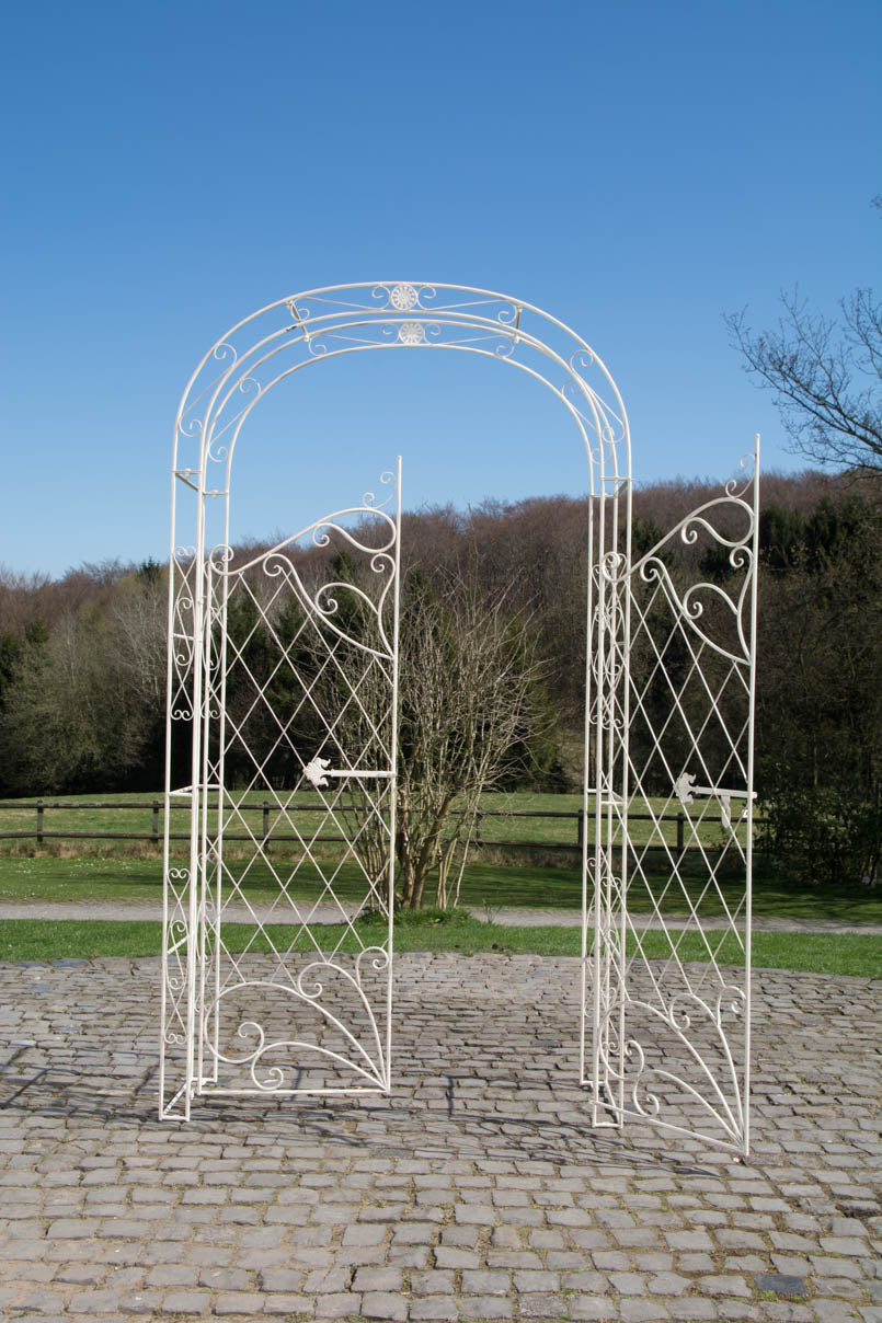 Arche à rosiers avec deux portes plantes grimpantes décoration jardin 220x120 cm en métal crème vieilli 10_0003956