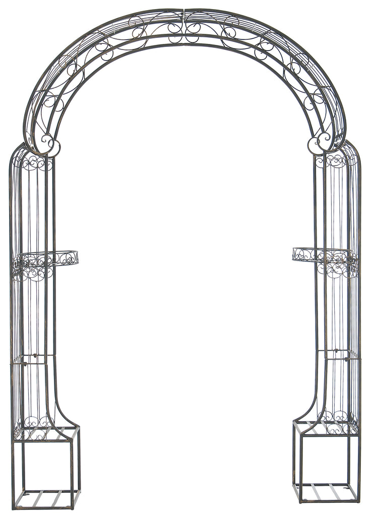 Cet arceau au design très élégant est l’aide idéale pour faire grimper des plantes comme les rosiers, la vigne ou le lierre. Fabriqué en métal très robuste, cet arceau à rosiers est de qualité supérieure. Les éléments de décoration sont très jolis et donne, en plus, un bon support pour faire grimper vos plantes. Vous pouvez ainsi être assuré d’une bonne densité de végétation. Veuillez noter que les crochets de fixation ne sont pas inclus dans la livraison.