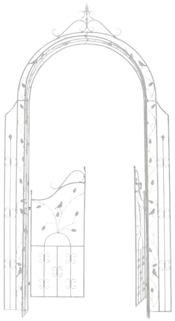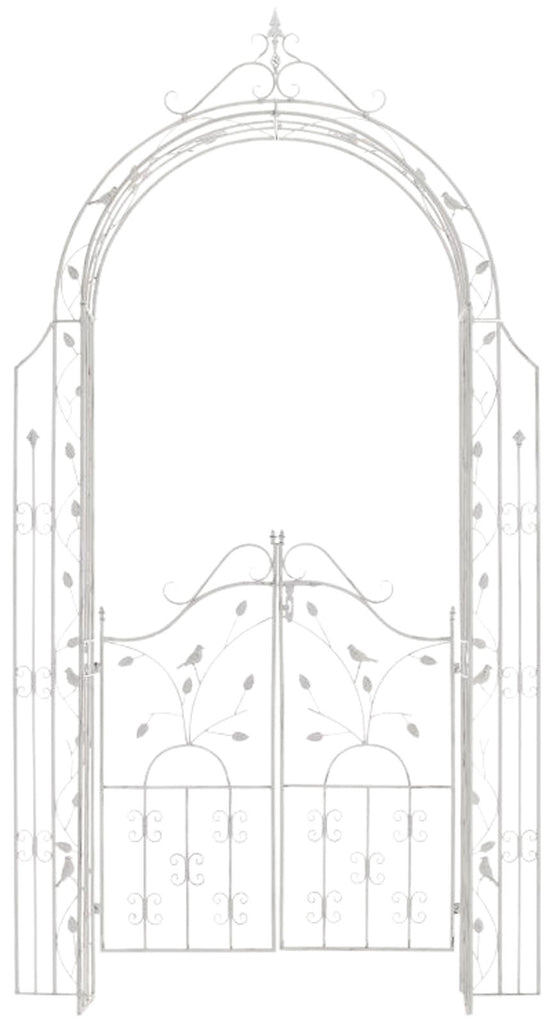 Arche de jardin arcade à rosiers avec portillon décoration jardin 235x100 cm en métal blanc vieilli 10_0003933