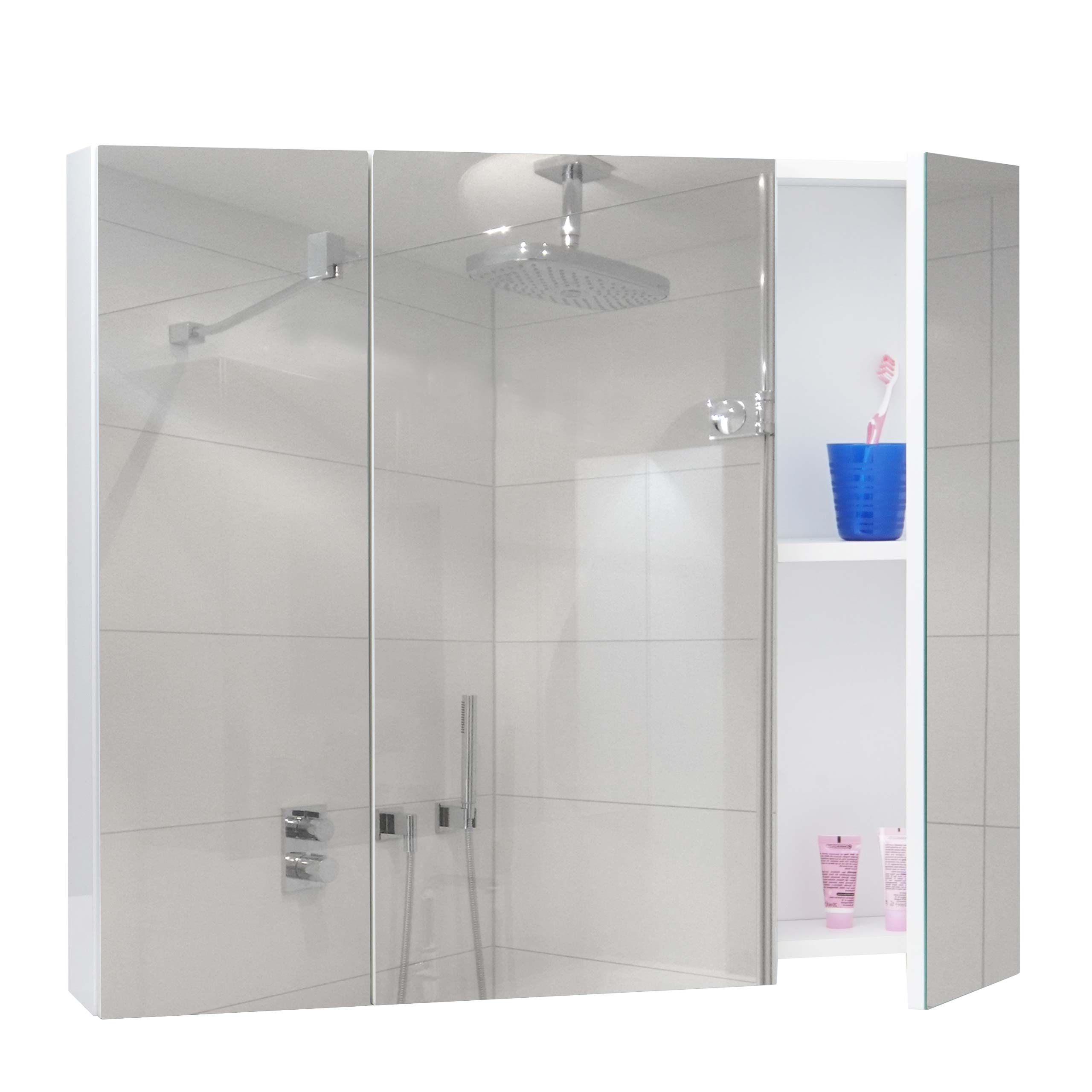 Armoire à miroir meuble de salle de bain mural 6 étagères brillant 70 x 80 x 16 cm blanc 04_0005769