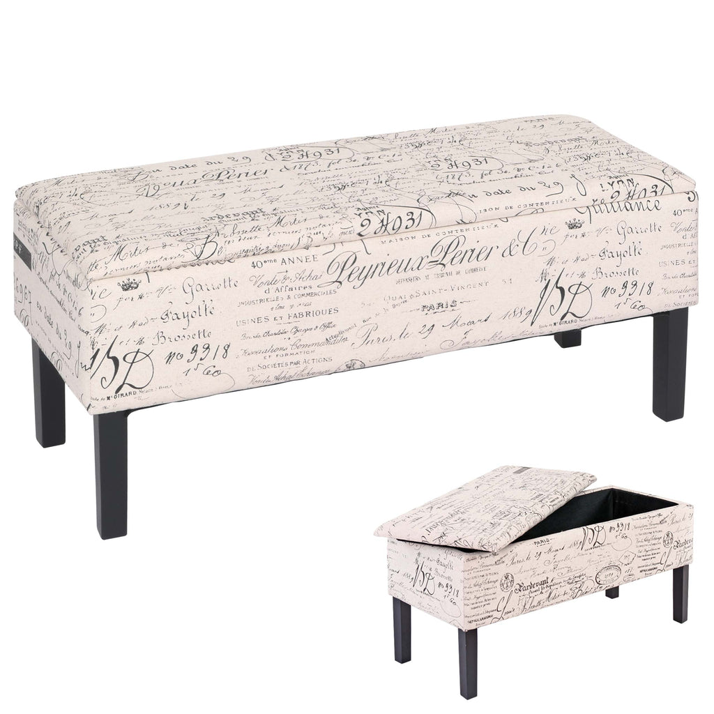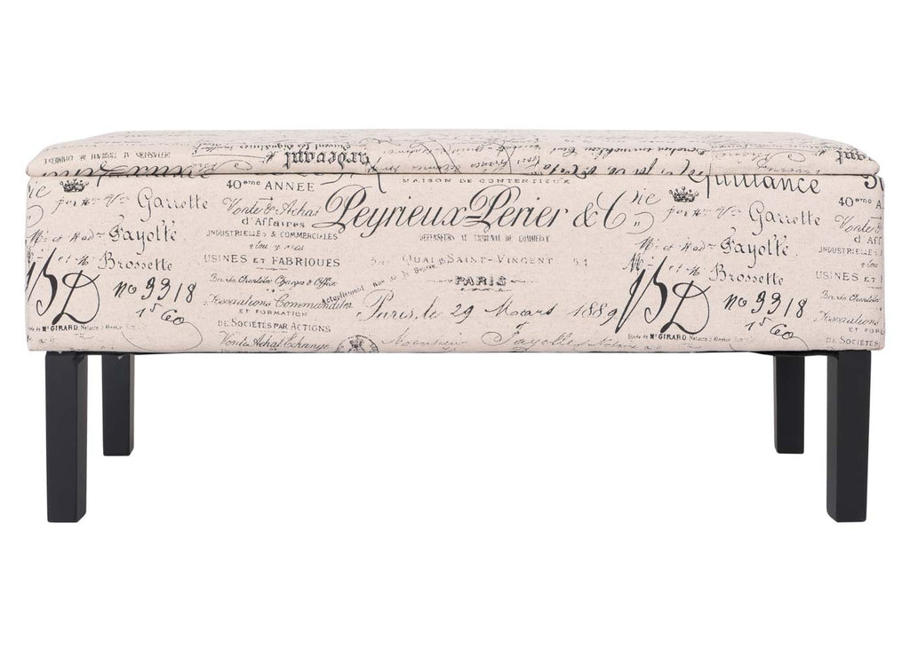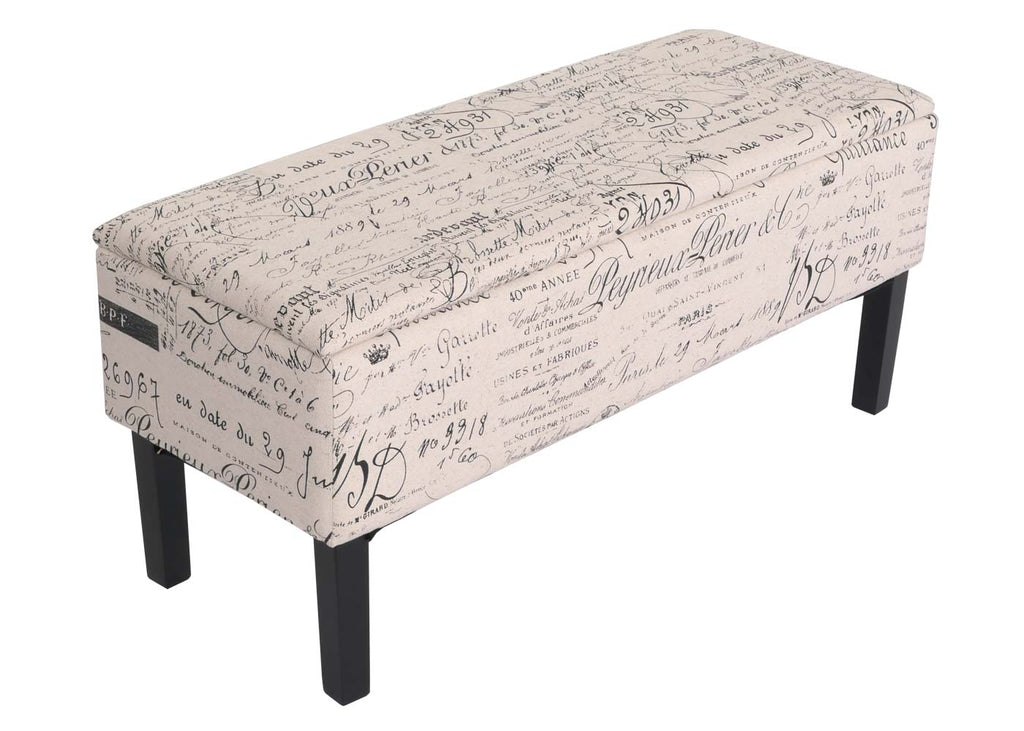 Banc banquette coffre de rangement en tissu crème avec écriture 95 x 36 x 44 cm 04_0005825