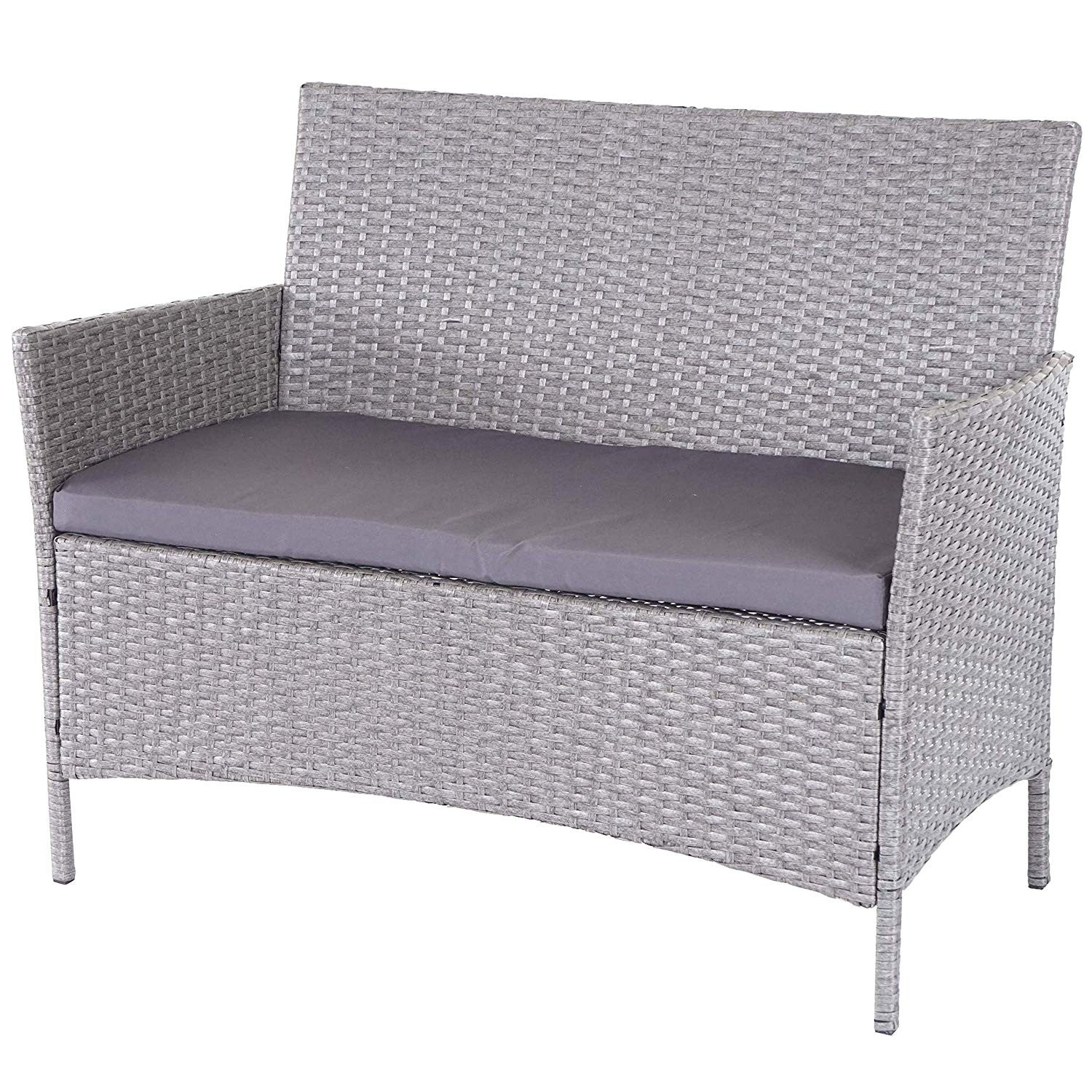 Banc de jardin banquette en polyrotin gris avec coussin gris MDJ04138