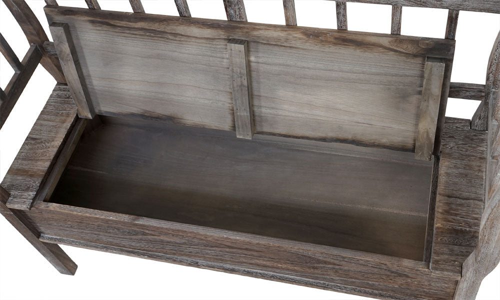 Banc avec espace de rangement et coussin d'assise 119 cm en bois vieilli gris-marron 04_0005870