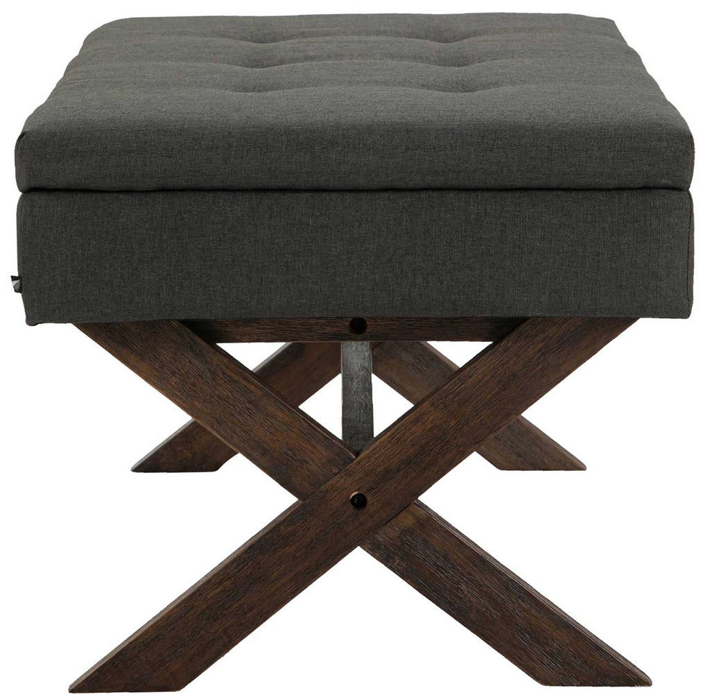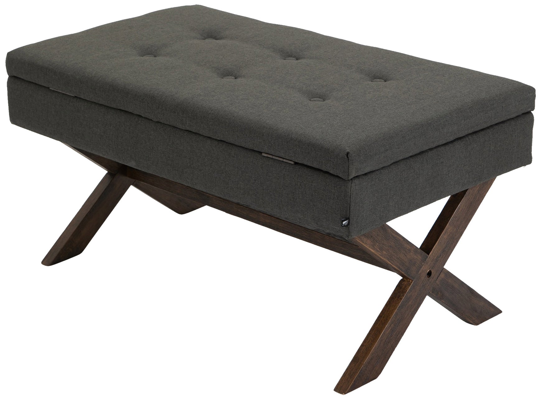 Banquette bout de lit 98 cm avec espace de rangement en tissu gris foncé avec boutons décoratifs pieds foncés 10_0003655