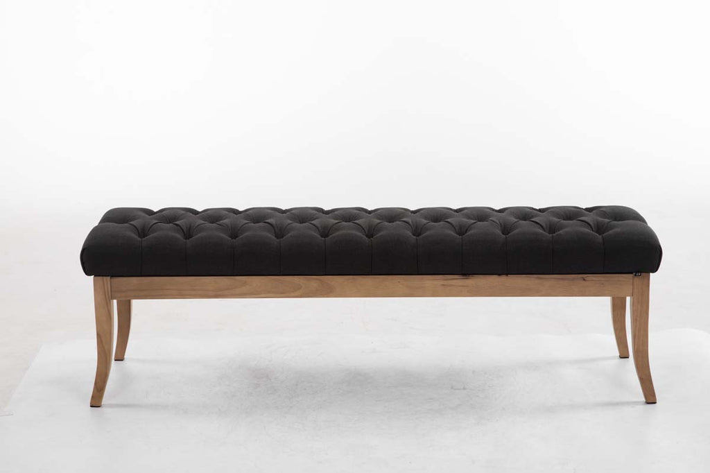 Banc design Chesterfield 150 cm avec coutures décoratives tissu gris foncé piétement en bois clair 10_0003699