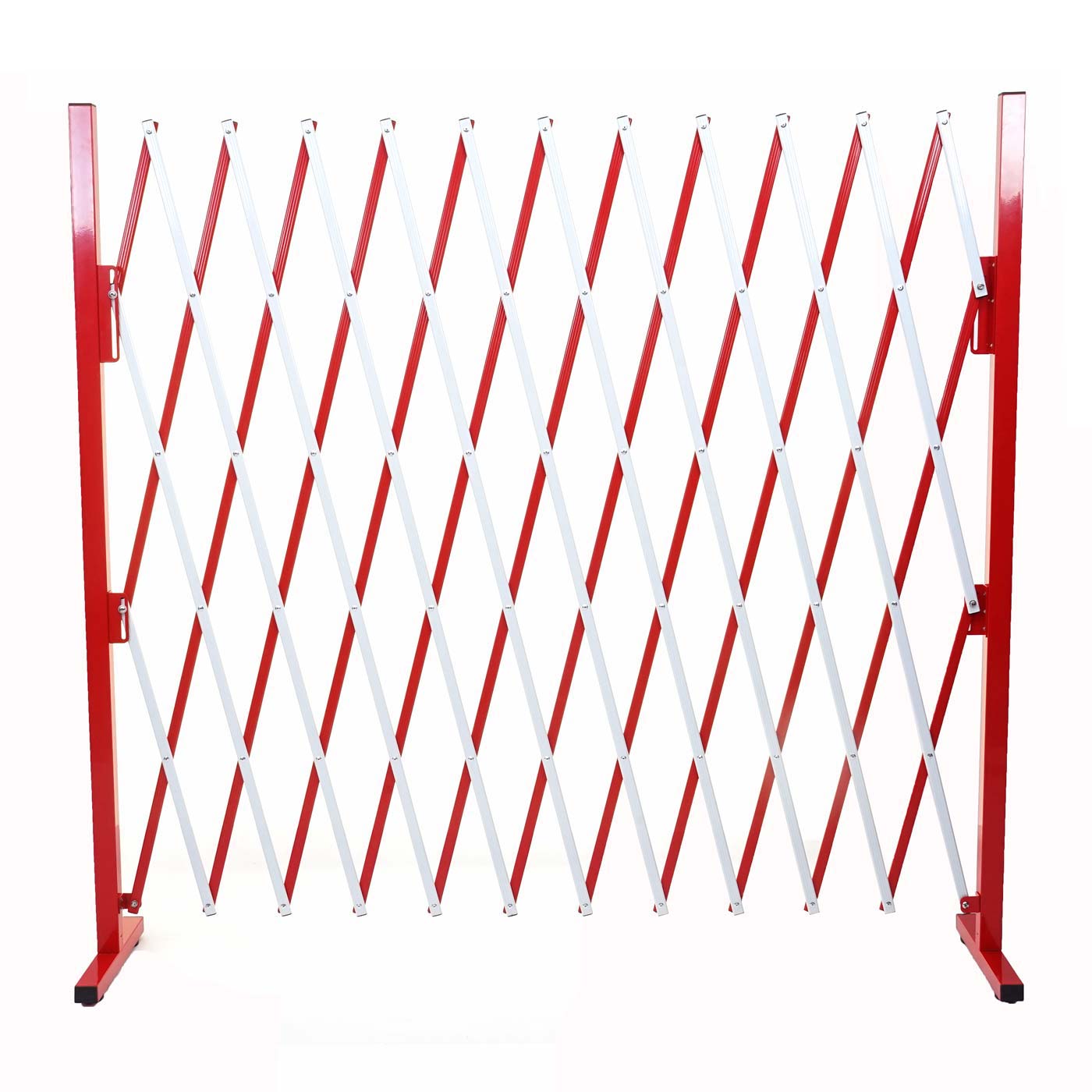 Grille de barrière grille de protection de clôture à ciseaux extensible aluminium rouge-blanc hauteur 153 cm 04_0001215