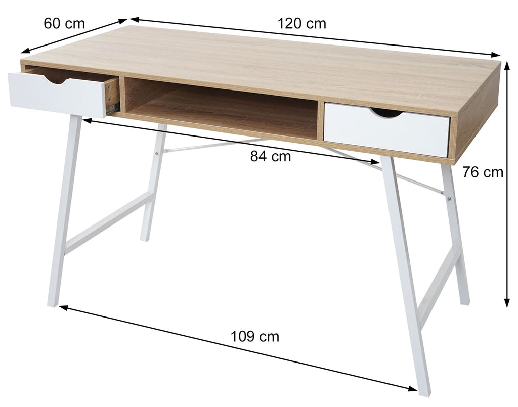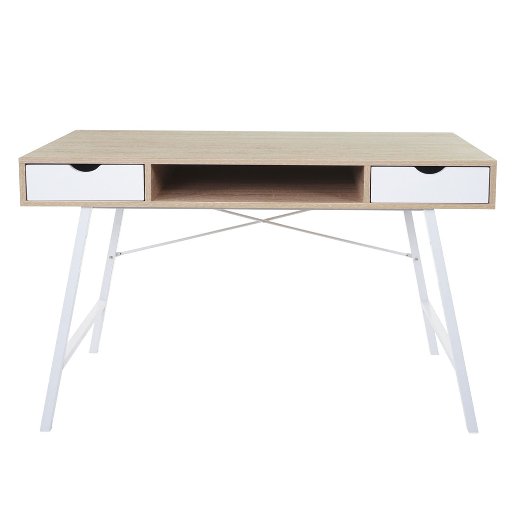 Bureau table d'ordinateur design scandinave avec 2 tiroirs 120x60cm en MDF blanc et brun naturel 04_0001440