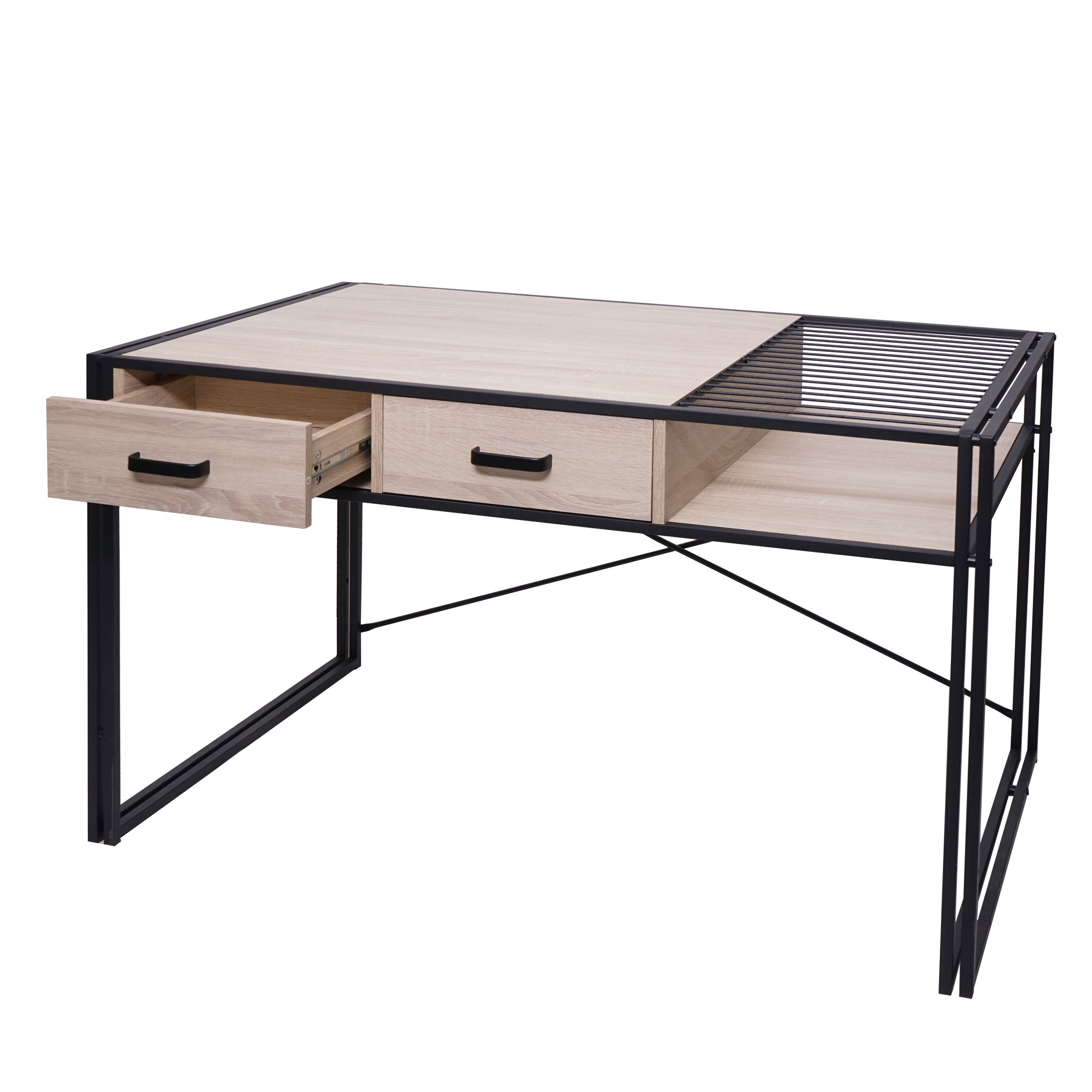 Bureau d'ordinateur avec tiroirs et compartiment de rangement design industriel 76x120x70cm aspect chêne