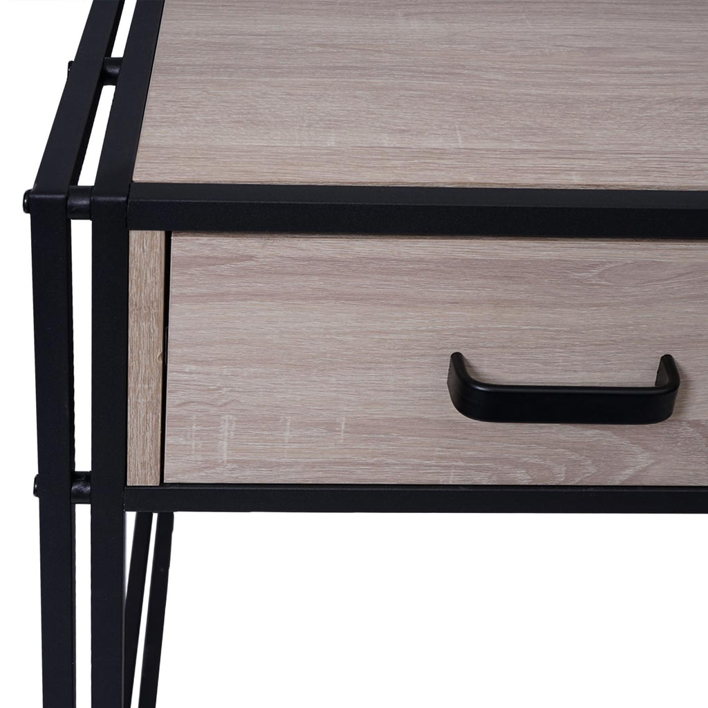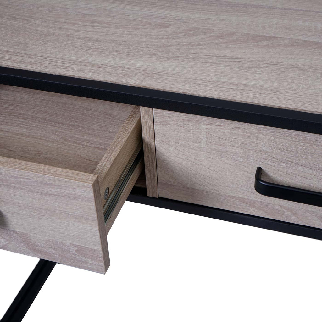 Bureau d'ordinateur avec tiroirs et compartiment de rangement design industriel 76x120x70cm aspect chêne 04_0001450
