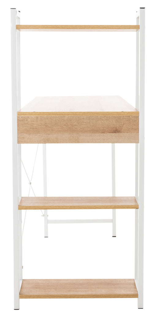 Bureau table de travail style rétro avec colonne de rangement étagère en bois et métal blanc 10_0003614