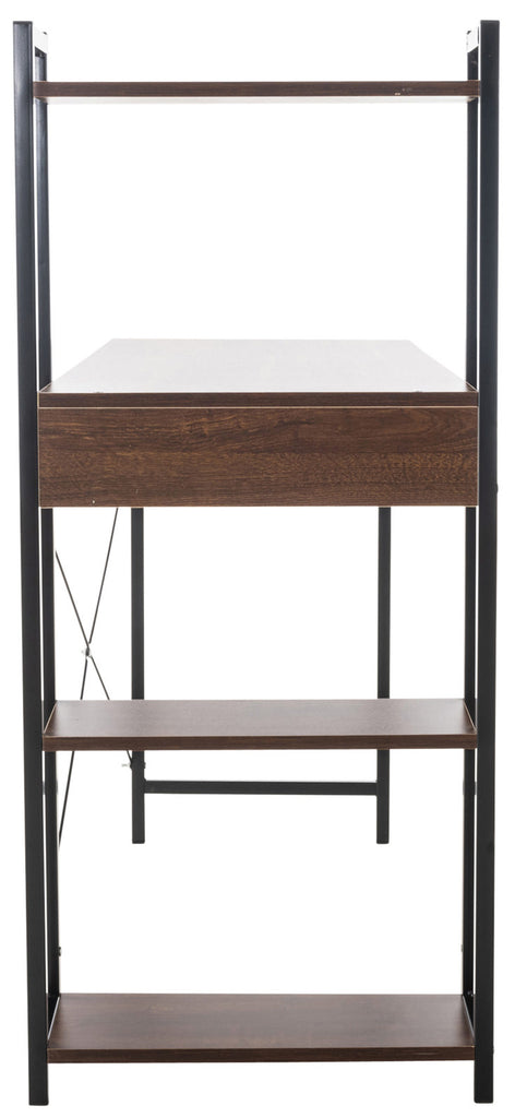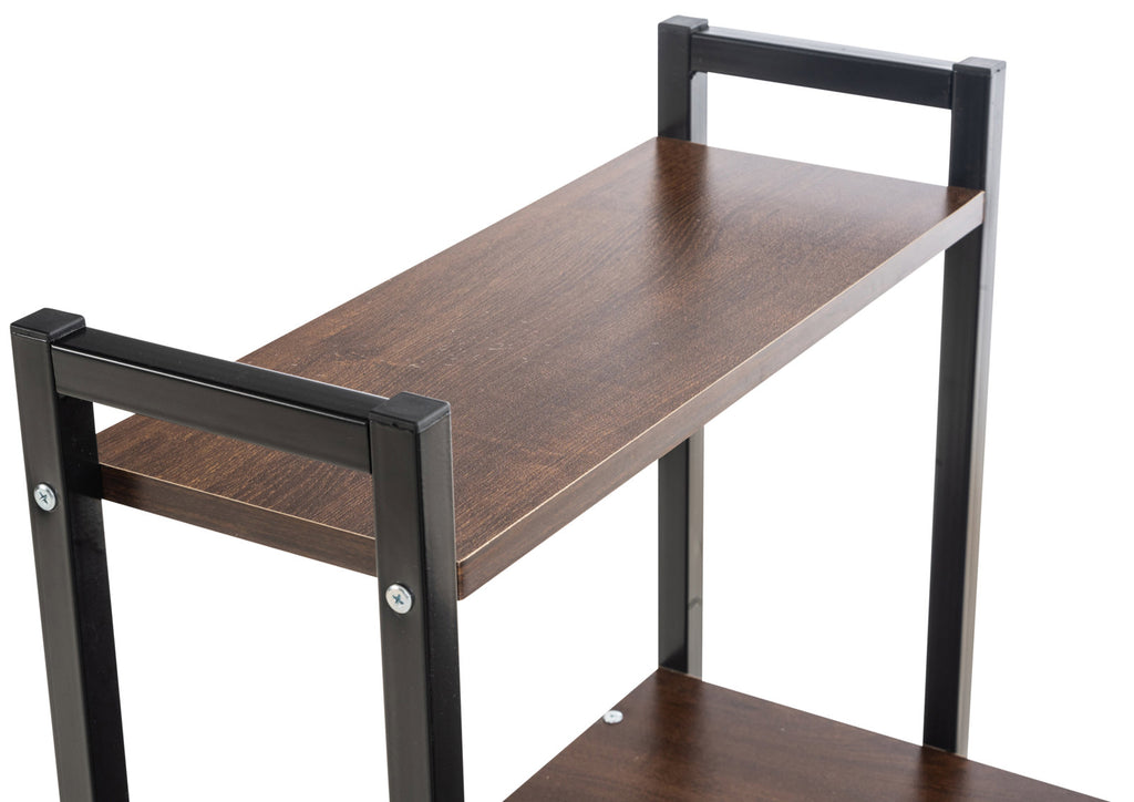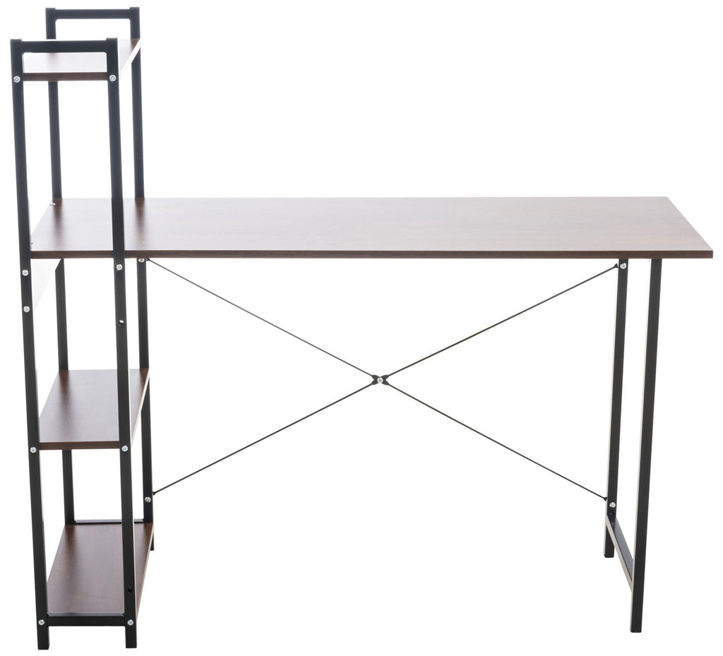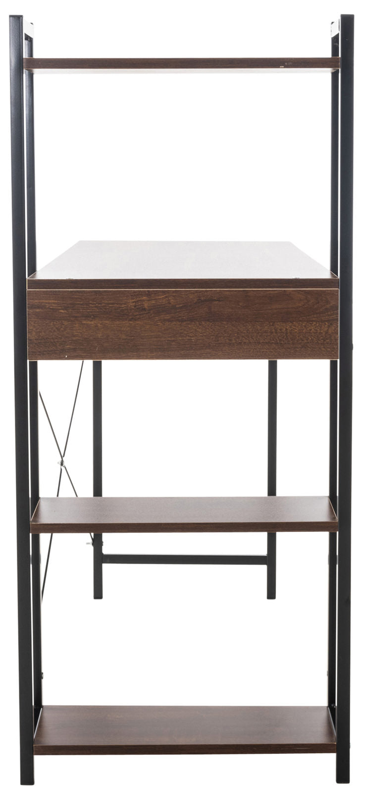 Bureau table de travail style rétro avec colonne de rangement étagère en bois noyer et métal noir 10_0003613