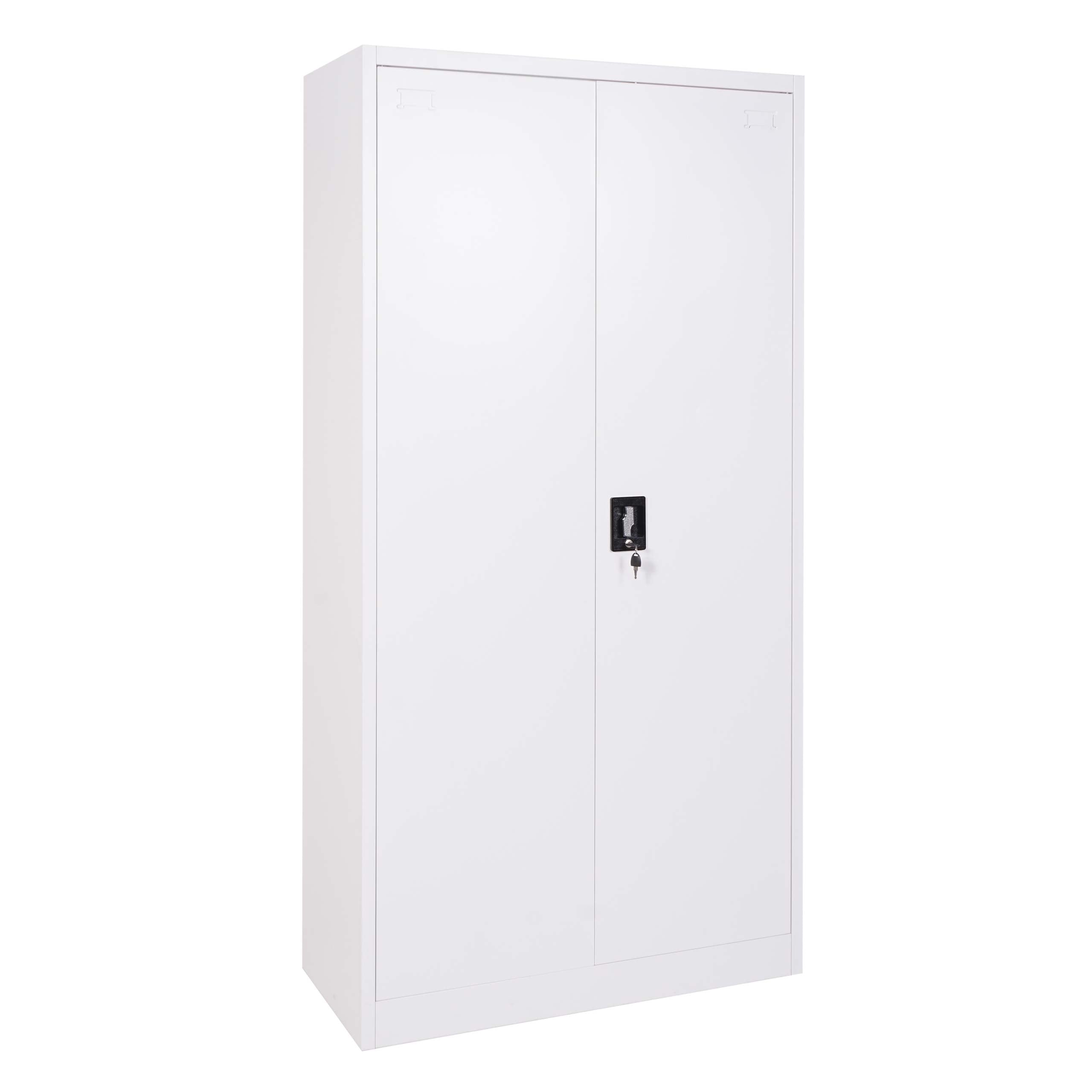 Armoire de bureau étagère de rangement 2 portes verrouillables en métal blanc 185x90x40cm 04_0001473