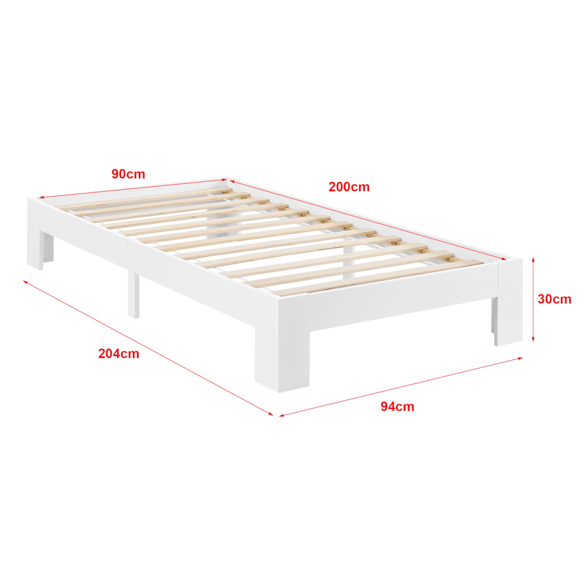 Lit une personne design simple cadre avec sommier à lattes en pin et bois 90 x 200 cm blanc 03_0004930