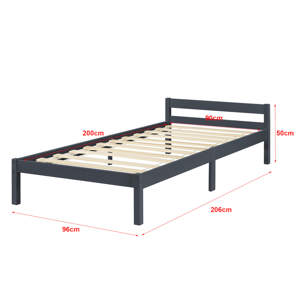 Cadre de lit avec sommier à lattes lit simple 90 x 200 cm en pin gris foncé 03_0004986
