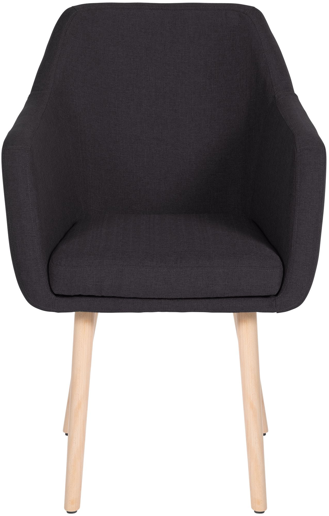 Chaise de salon avec accoudoirs quatre pieds résistants en bois clair assise en tissu noir 10_0003484