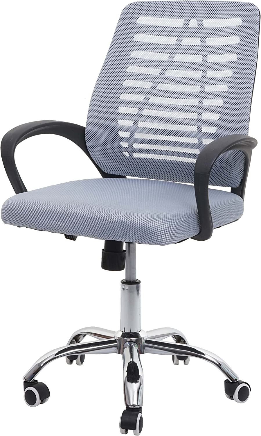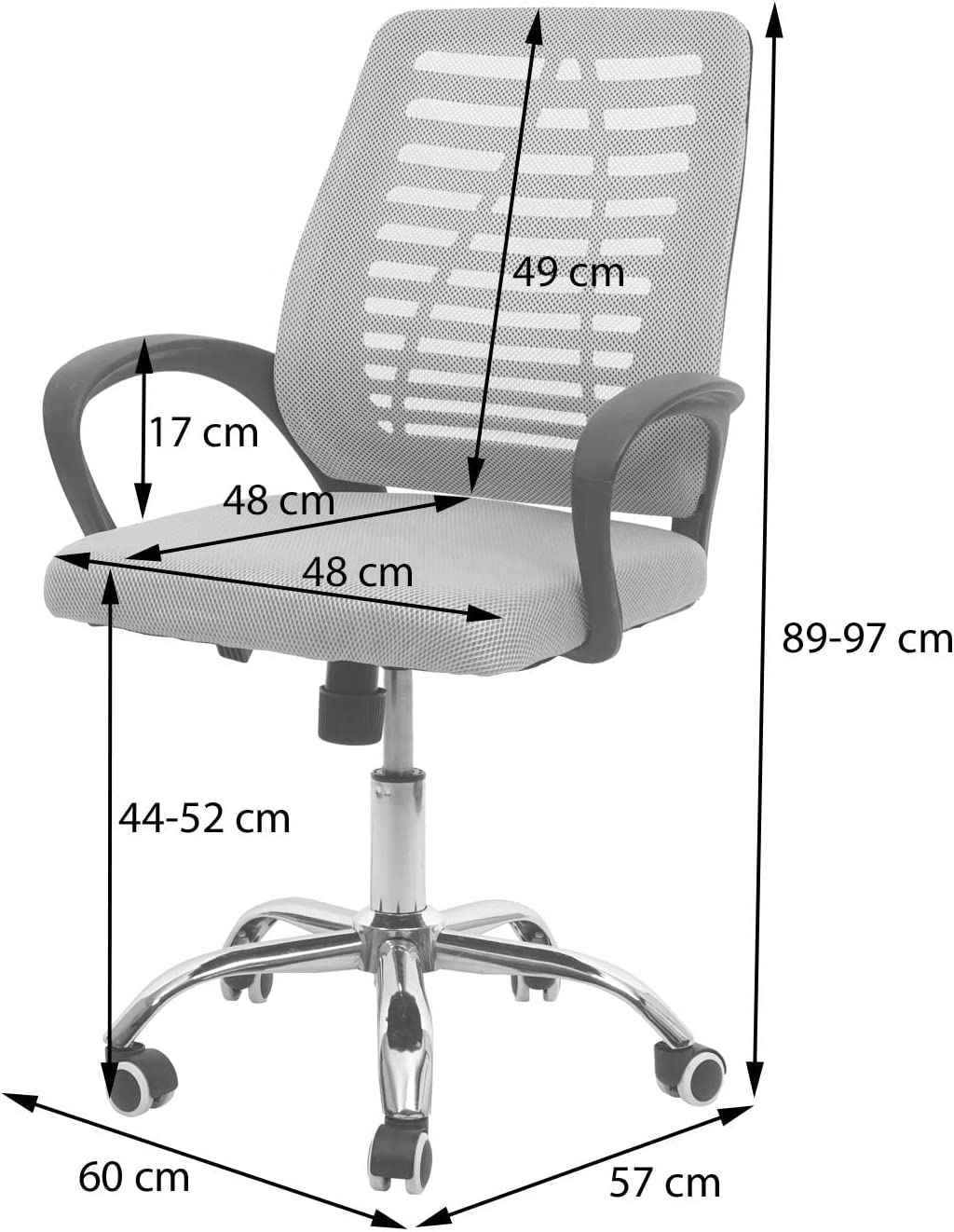 Chaise de bureau sur roulette dossier ergonomique revêtement en maille tissu/textile gris