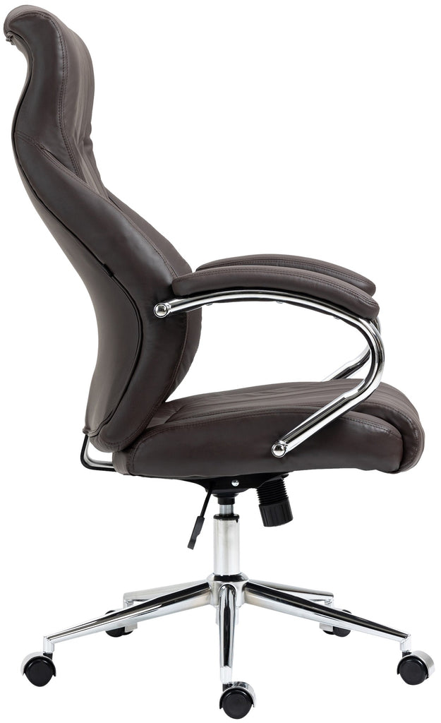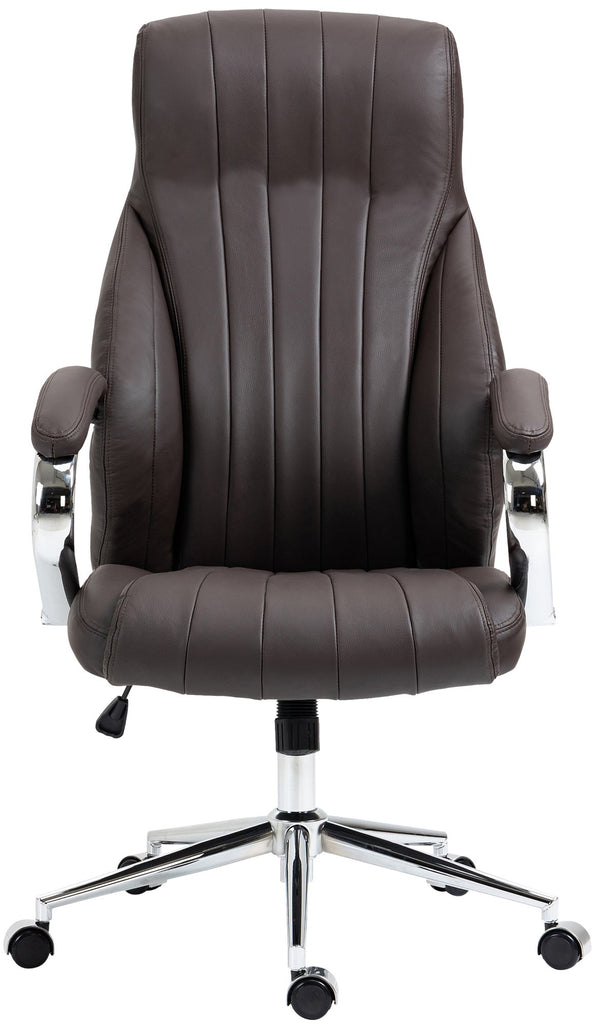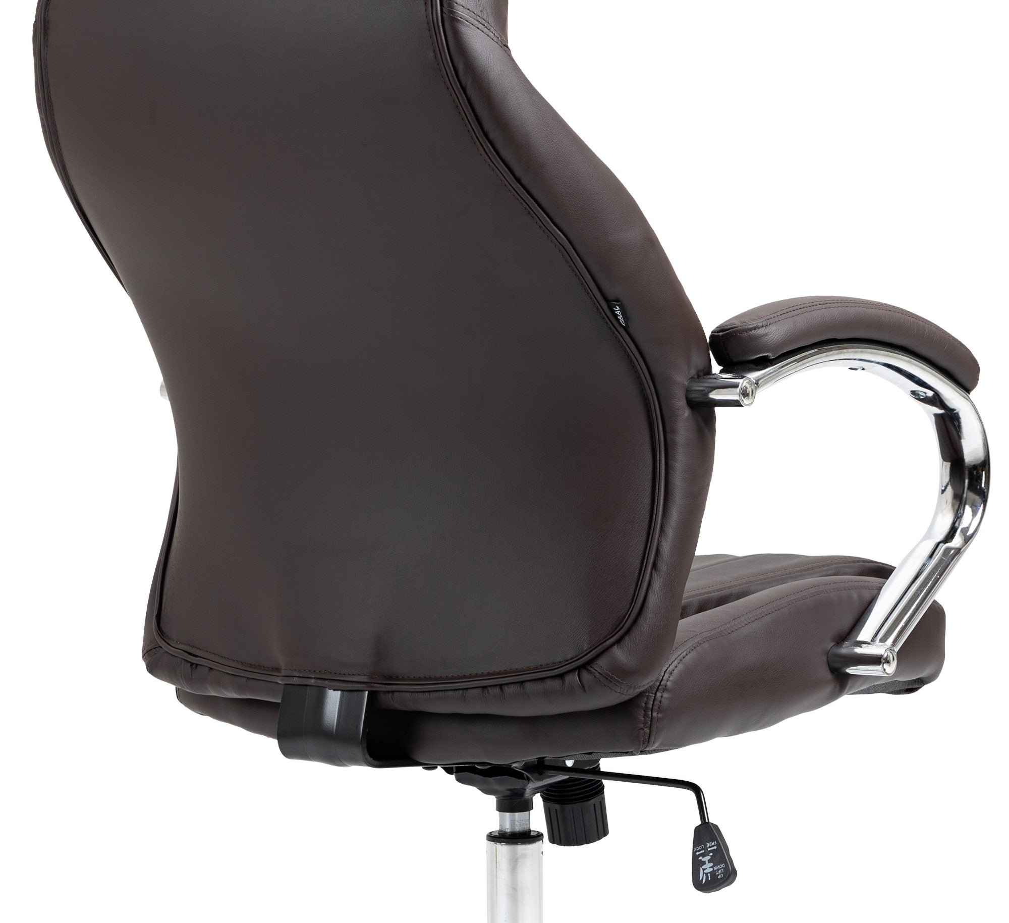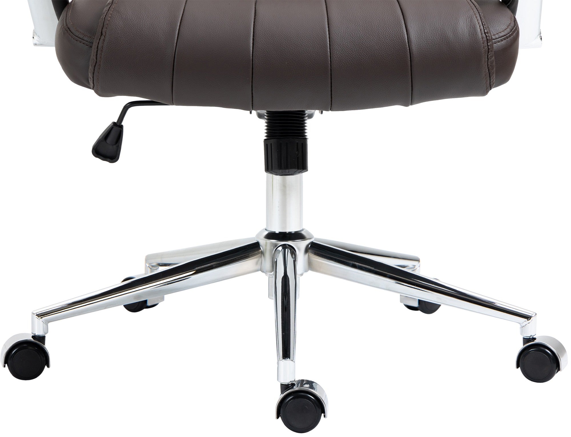 Fauteuil de bureau avec accoudoirs avec surpiqûre verticale en véritable cuir marron cadre en métal chromé 10_0007047