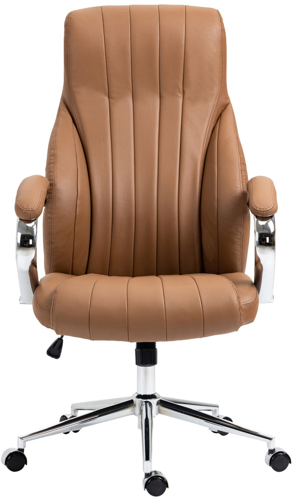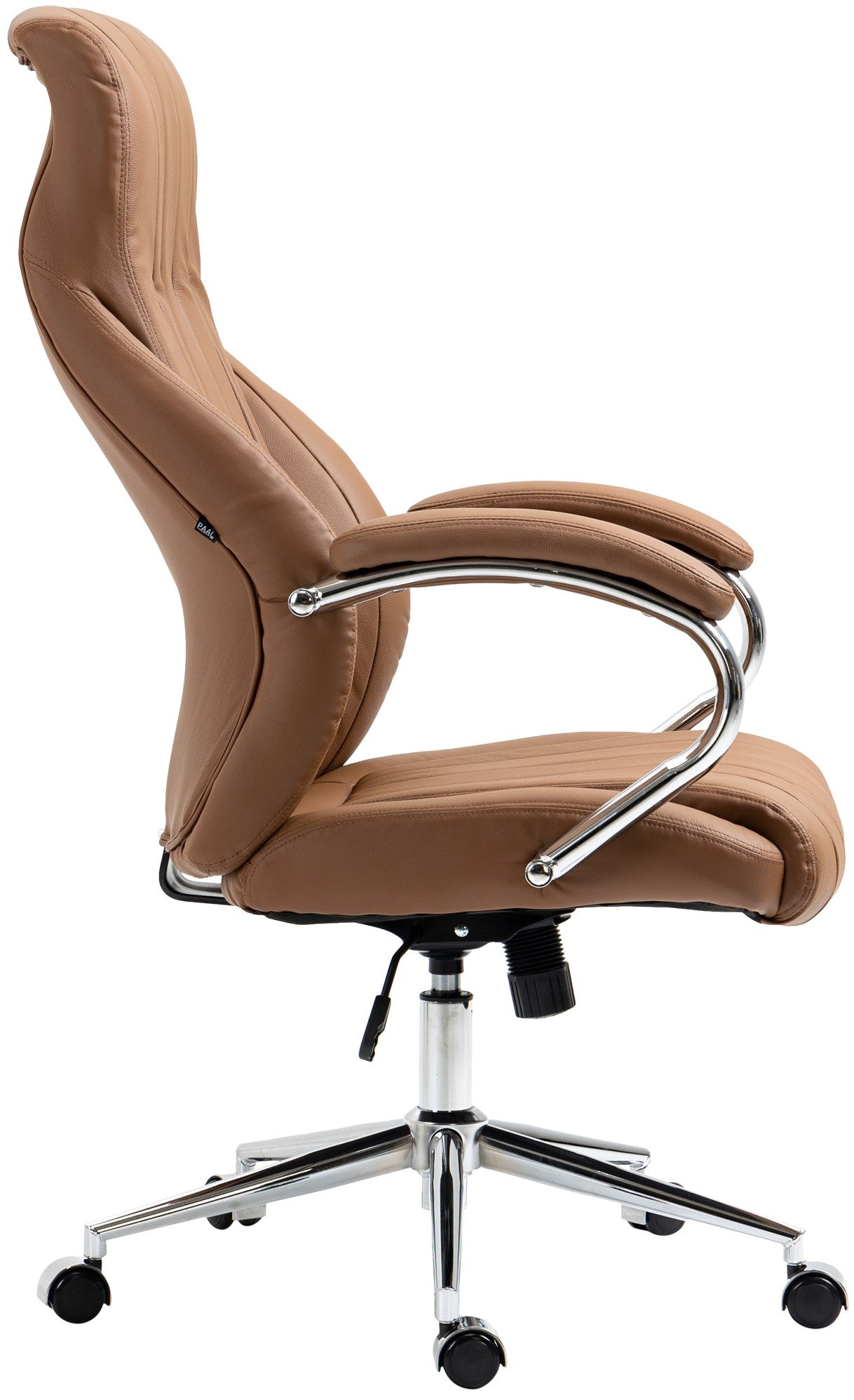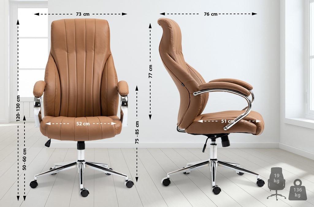 Fauteuil de bureau avec accoudoirs avec surpiqûre verticale en véritable marron clair gris cadre en métal chromé 10_0007024