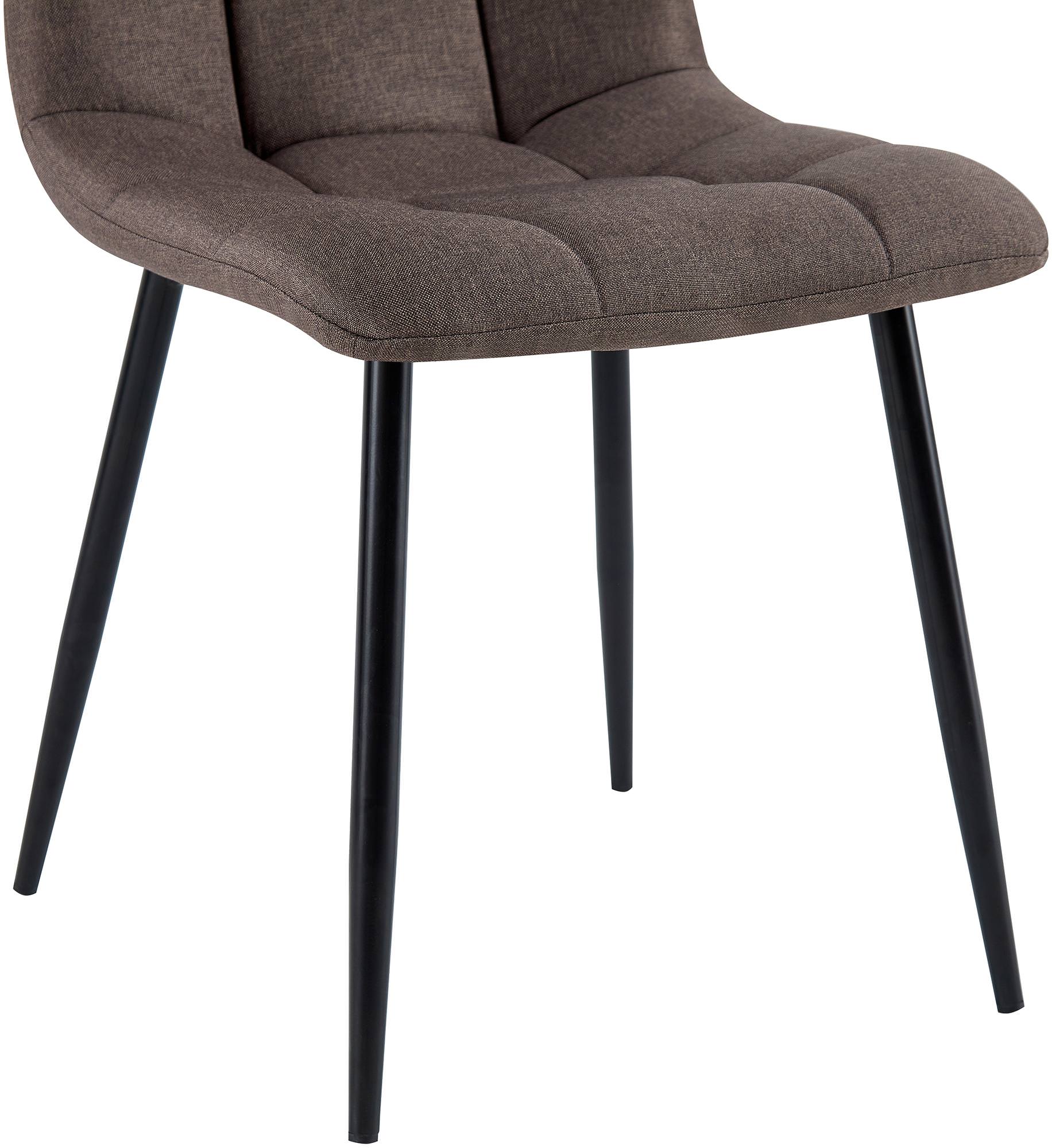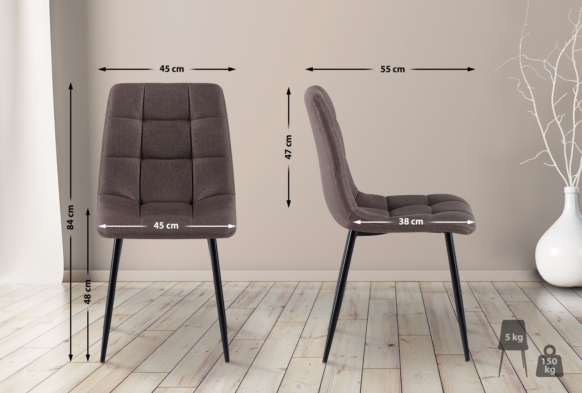 Lot de 4 chaises de salle à manger avec coutures décoratives carrées en tissu marron et pieds en métal noir 10_0001800