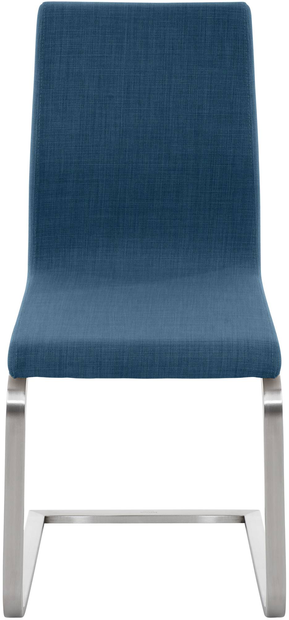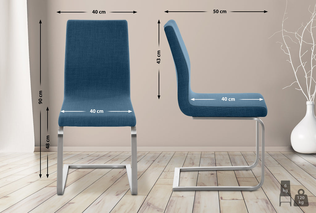 Chaise de salle à manger x1 design moderne en tissu bleu support en acier inoxydable 10_0007664