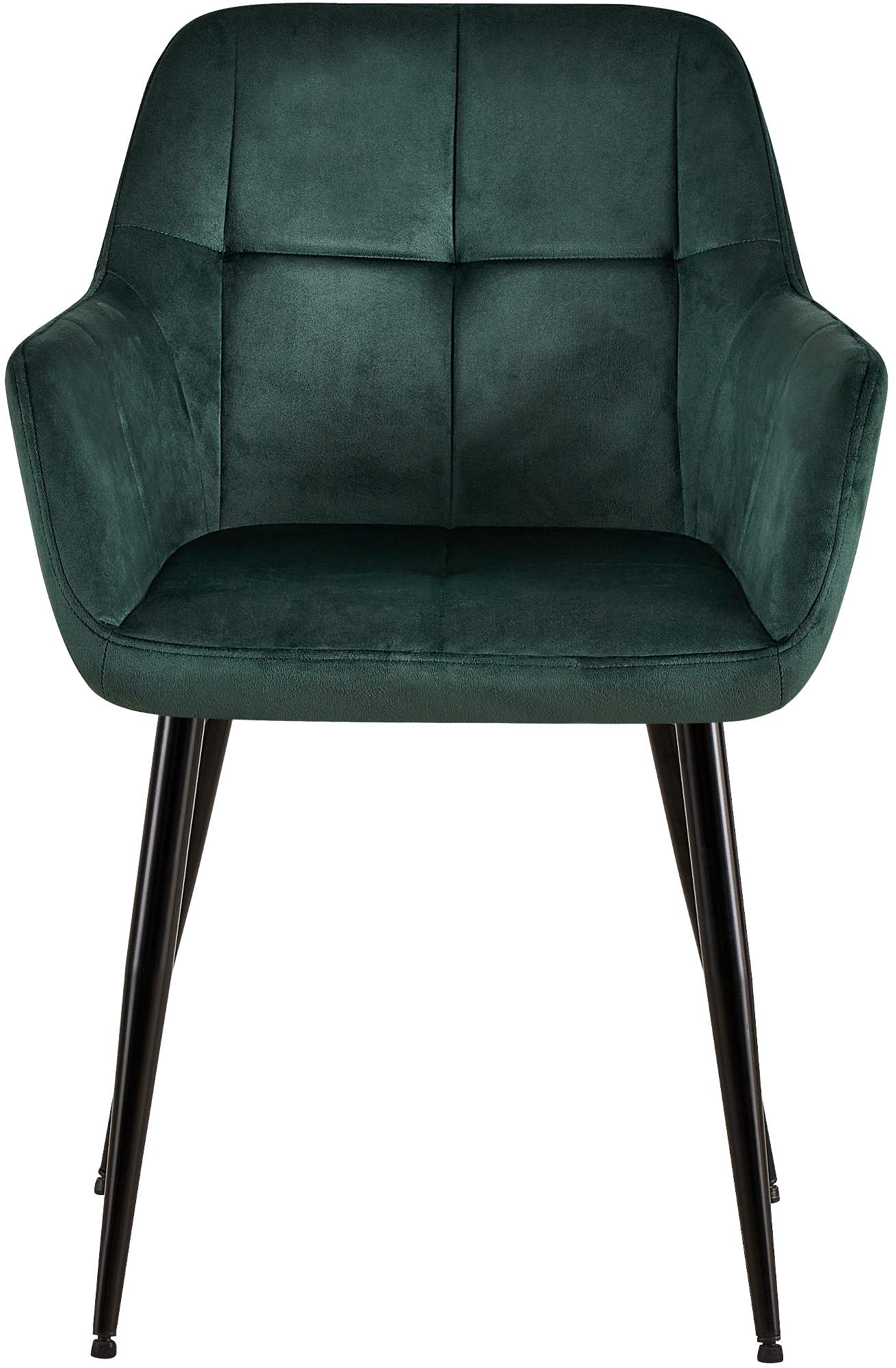 Chaise de salle à manger bureau coutures décoratives carrées en velours vert pieds en métal noir 10_0001899