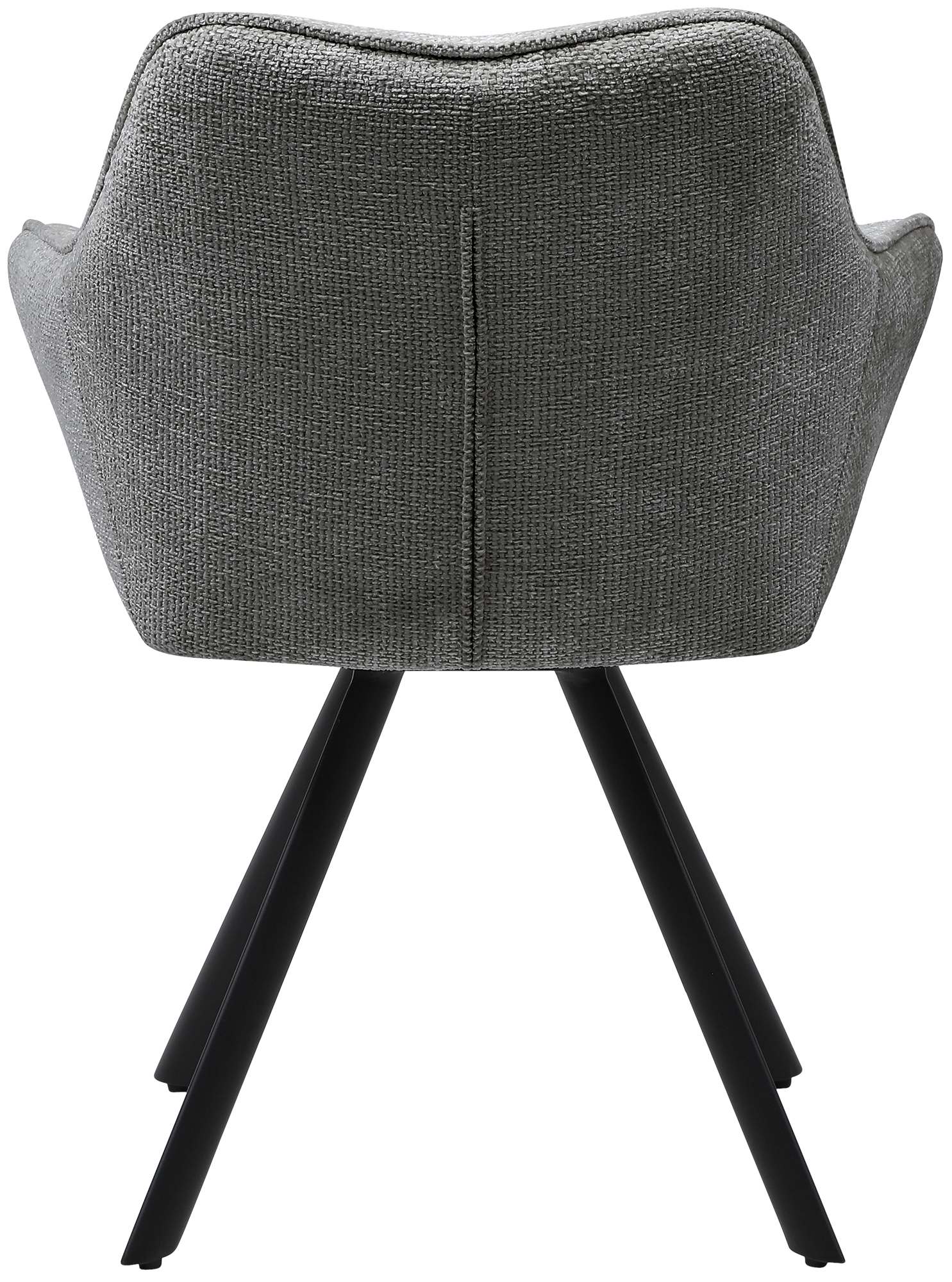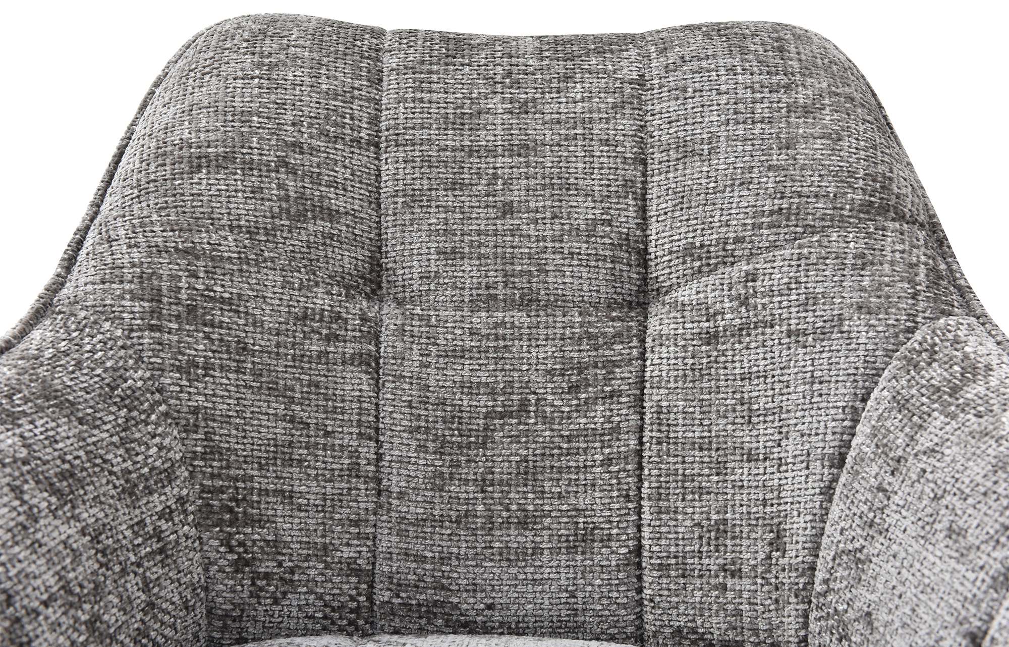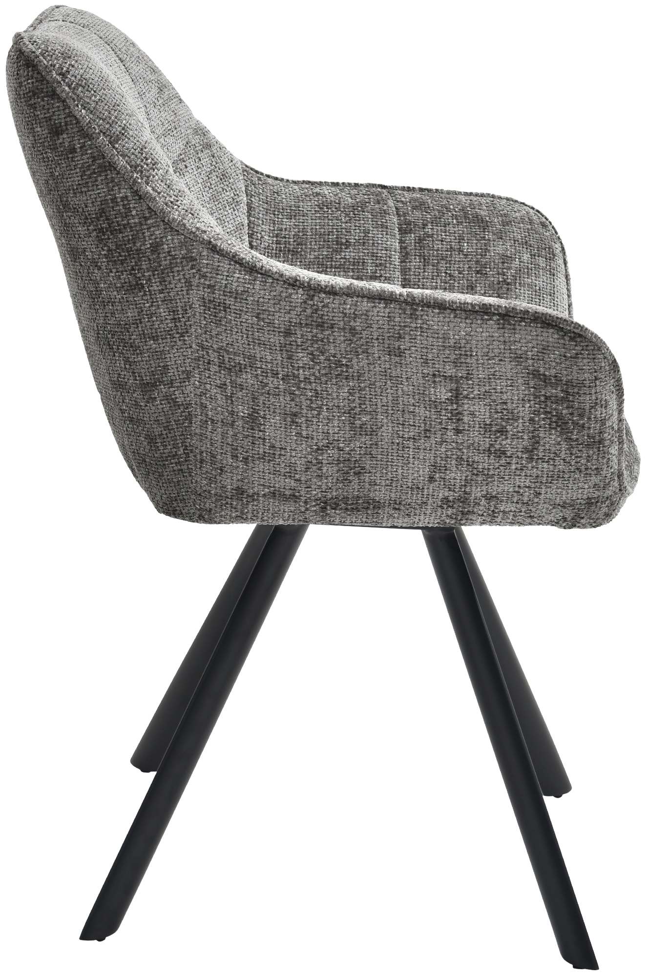 Chaise de salle à manger x1 coutures carrés accoudoirs en tissu gris et piétement à quatre pieds en métal 10_0002103