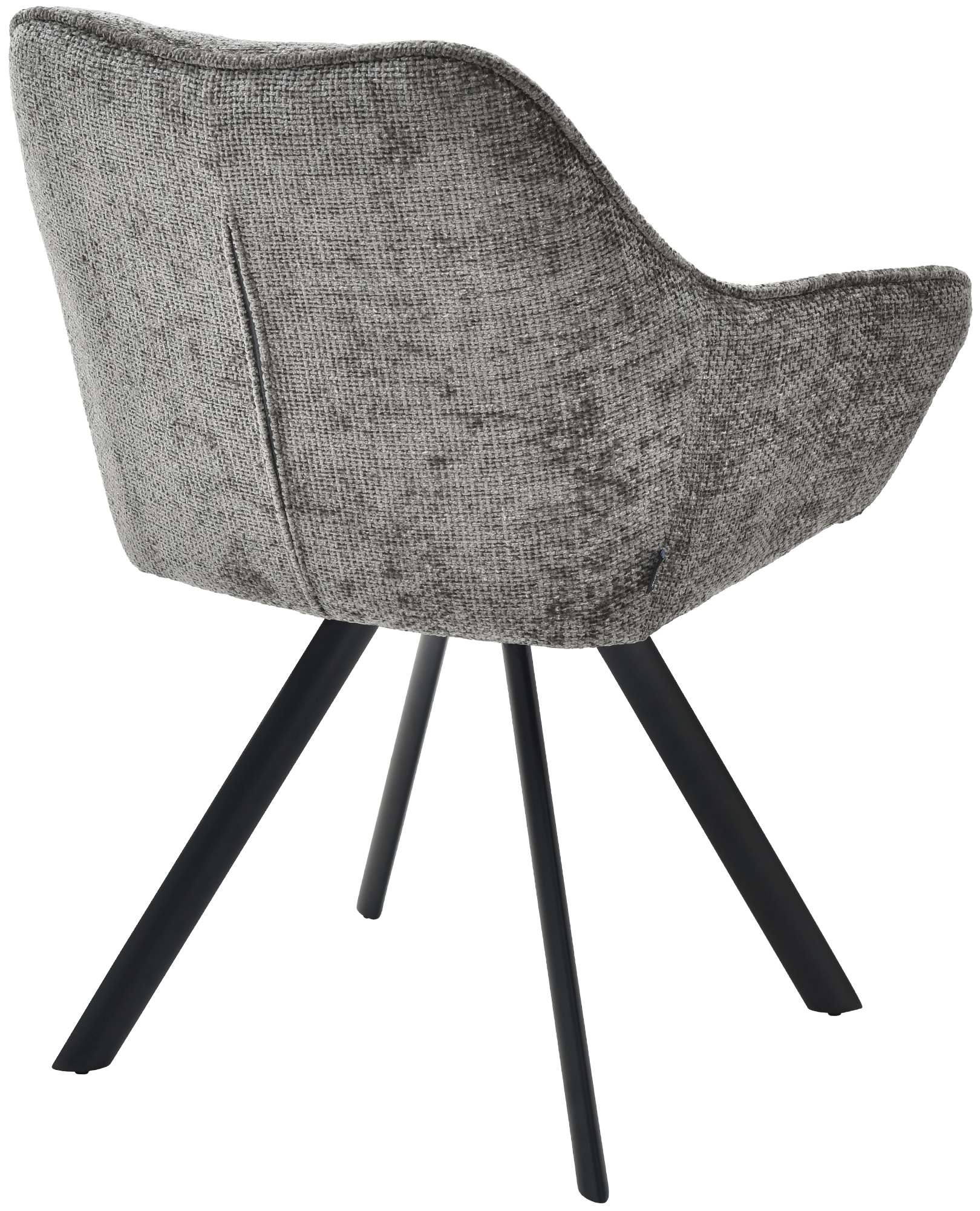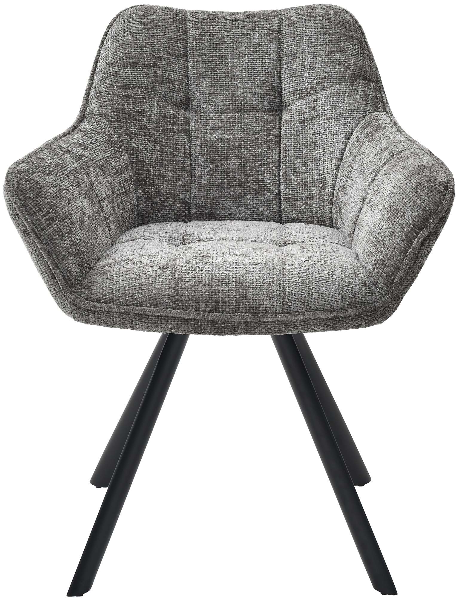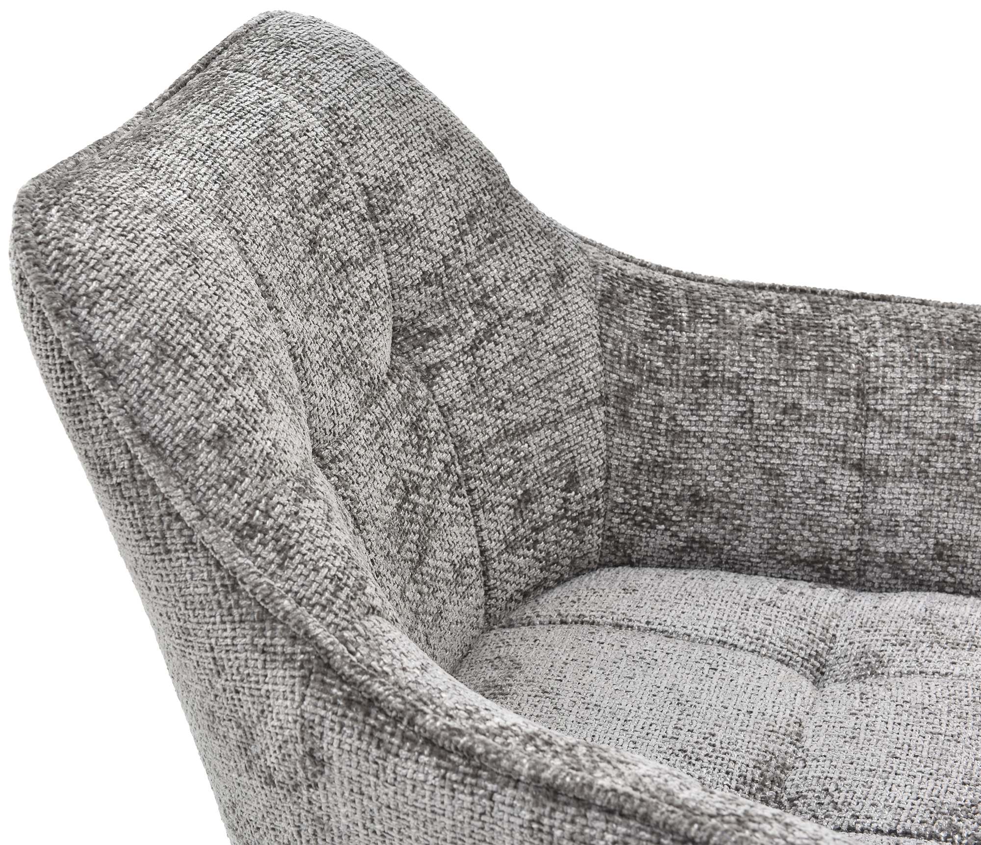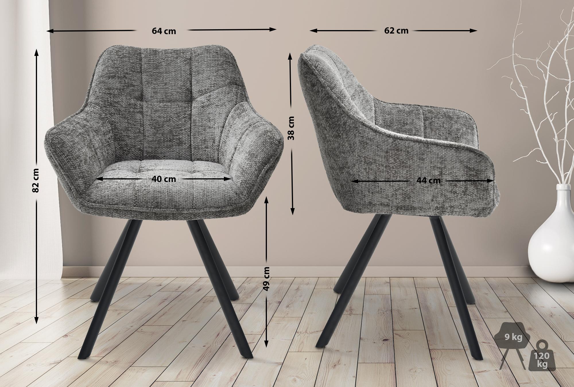 Chaise de salle à manger x1 coutures carrés accoudoirs en tissu gris et piétement à quatre pieds en métal 10_0002103