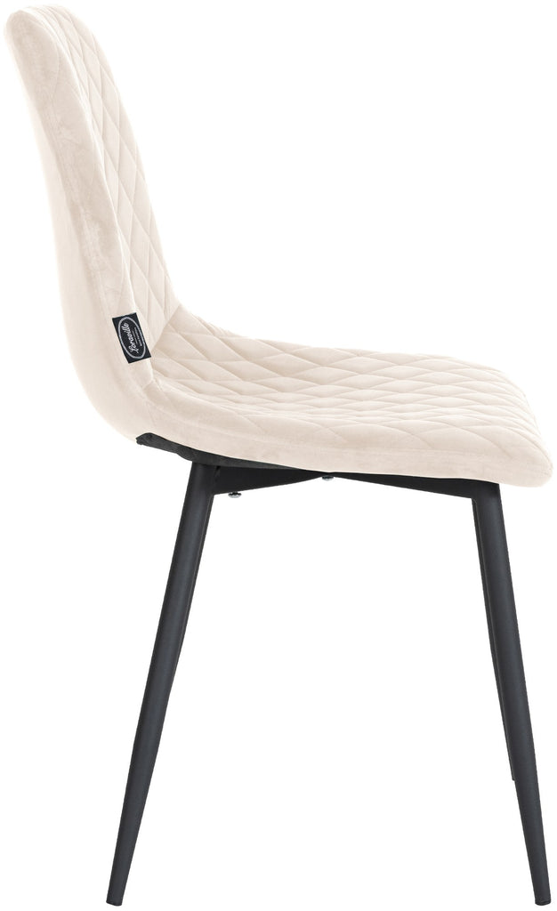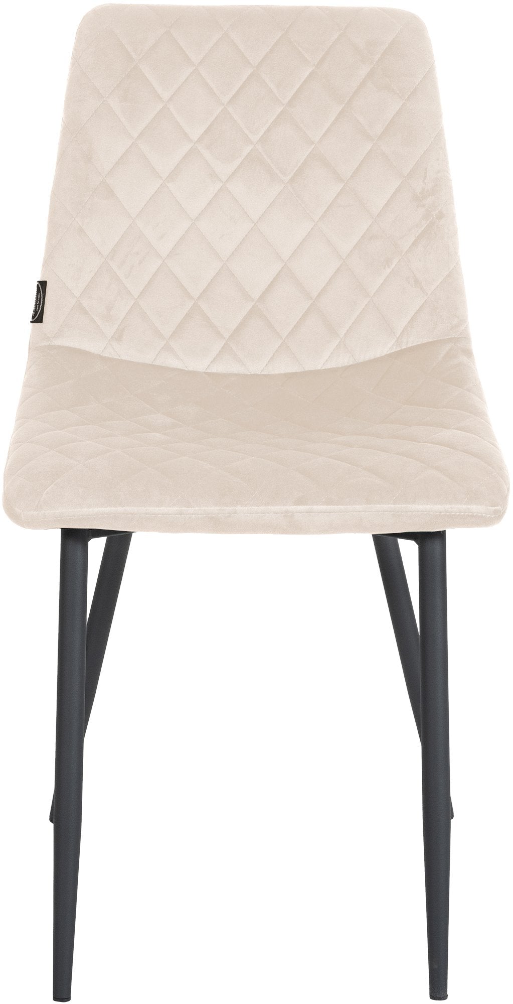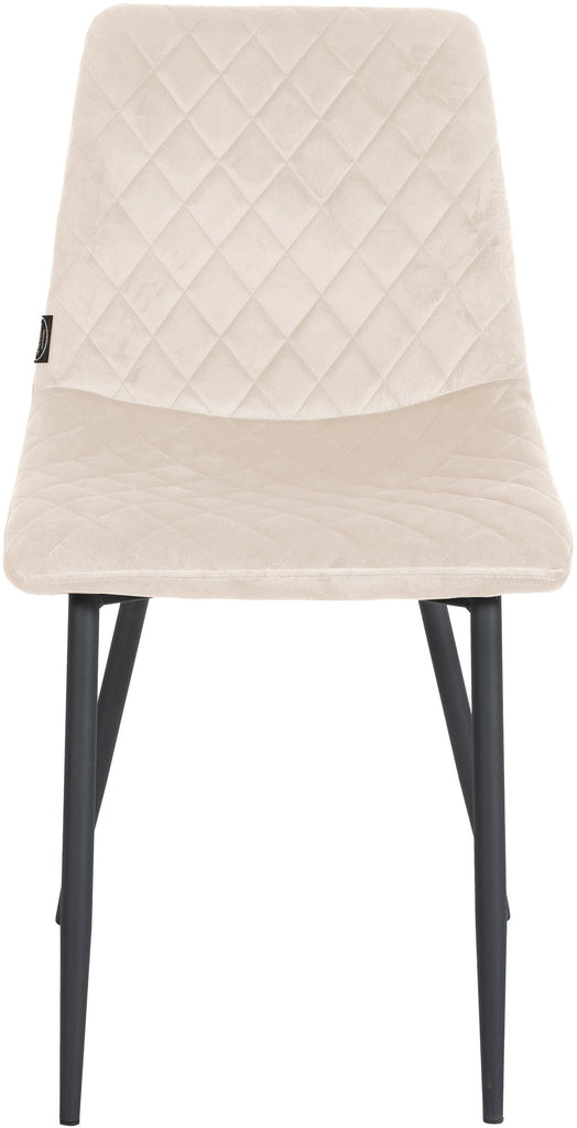 Chaise de salle à manger x1 coutures décoratives en losange assise en velours crème et pieds métal noir 10_0001498