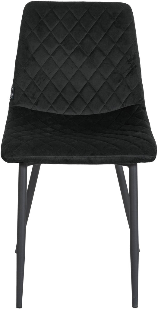 Chaise de salle à manger x1 coutures décoratives en losange assise en velours noir et pieds métal noir 10_0001497