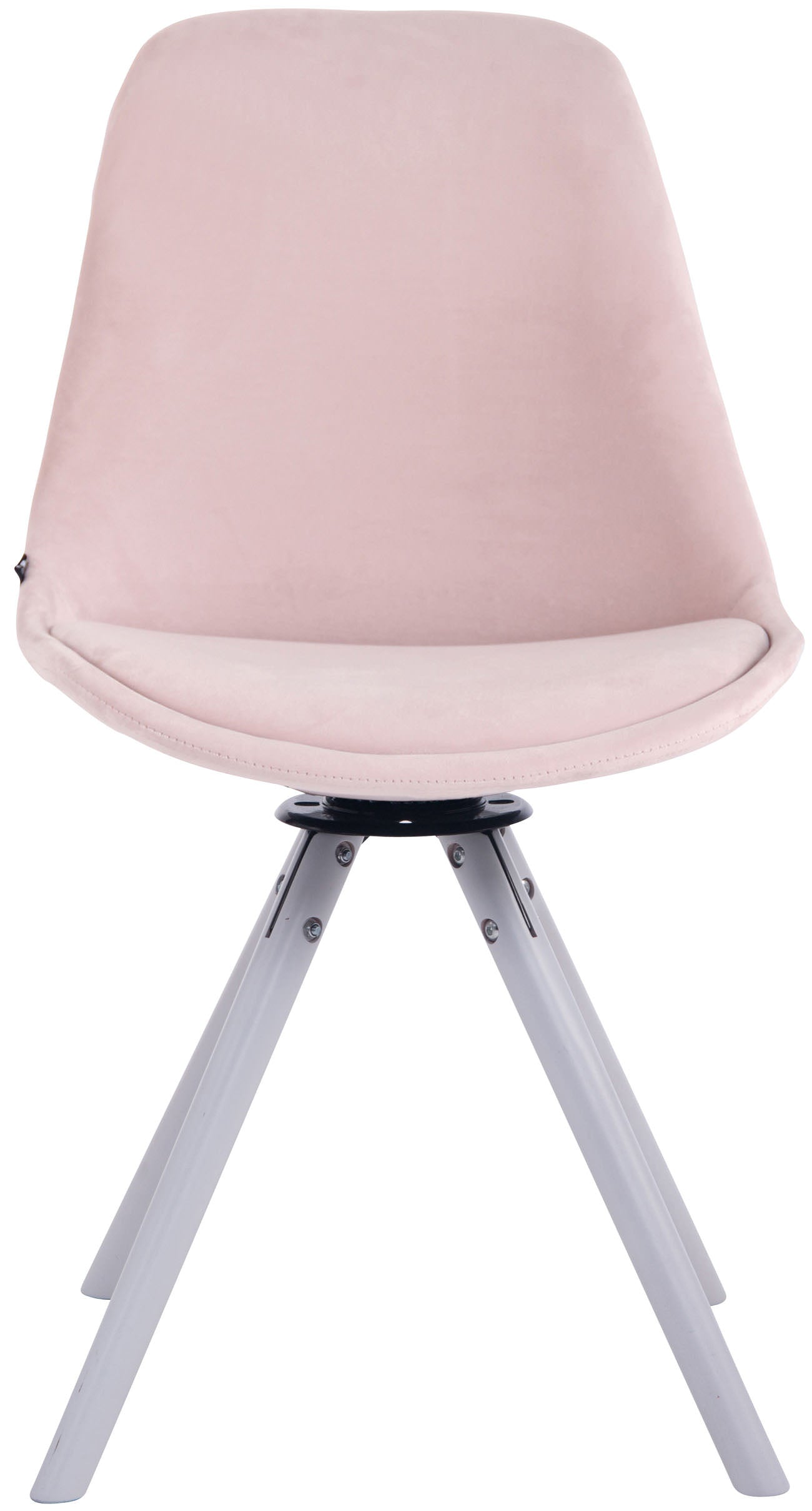 Chaise de salle à manger x1 chaise visiteur assise pivotant à 360° en velours rose piètement en bois ronde blanc 10_0007736