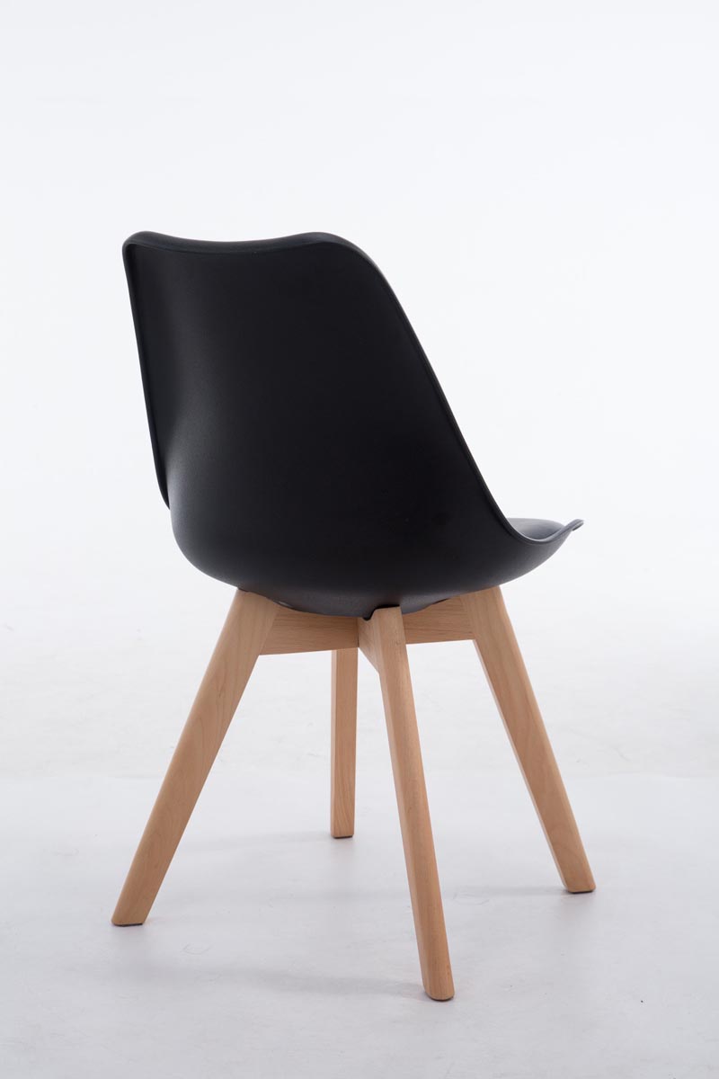 Chaise de salle à manger x1 design scandinave en PVC et plastique noir et piètement à 4 pieds en bois clair 10_0003269