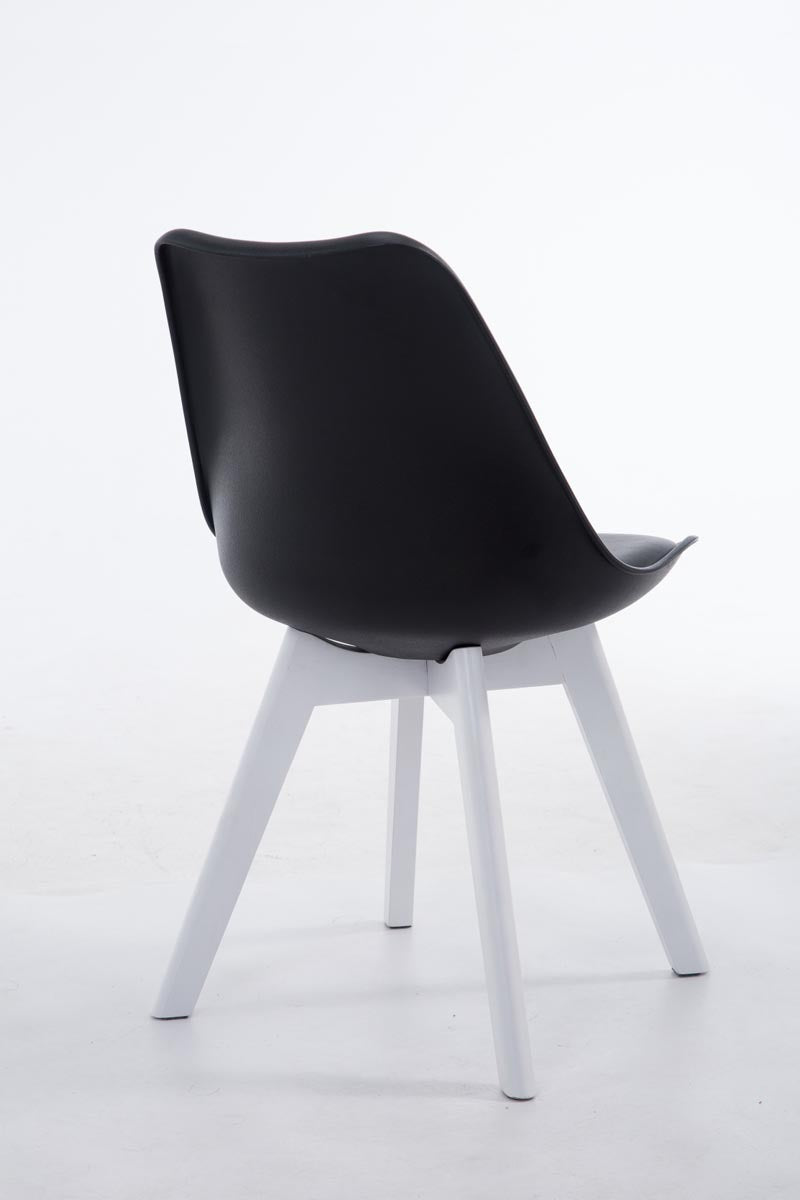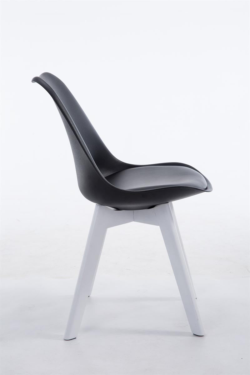 Chaise de salle à manger x1 design scandinave en PVC et plastique noir et piètement à 4 pieds en bois blanc 10_0003309