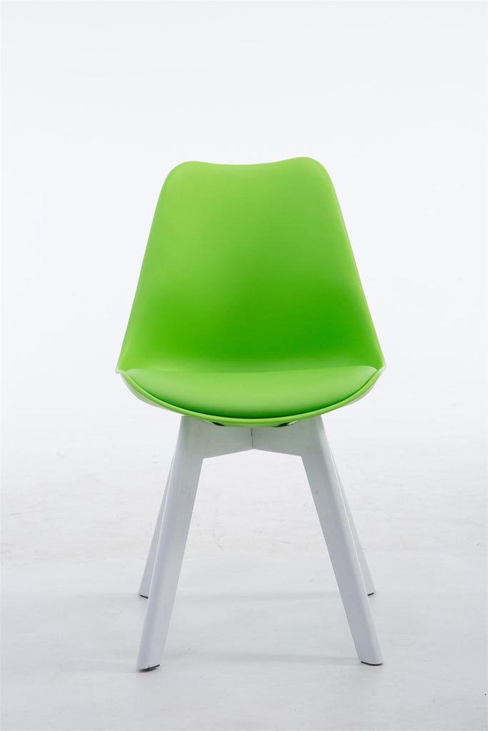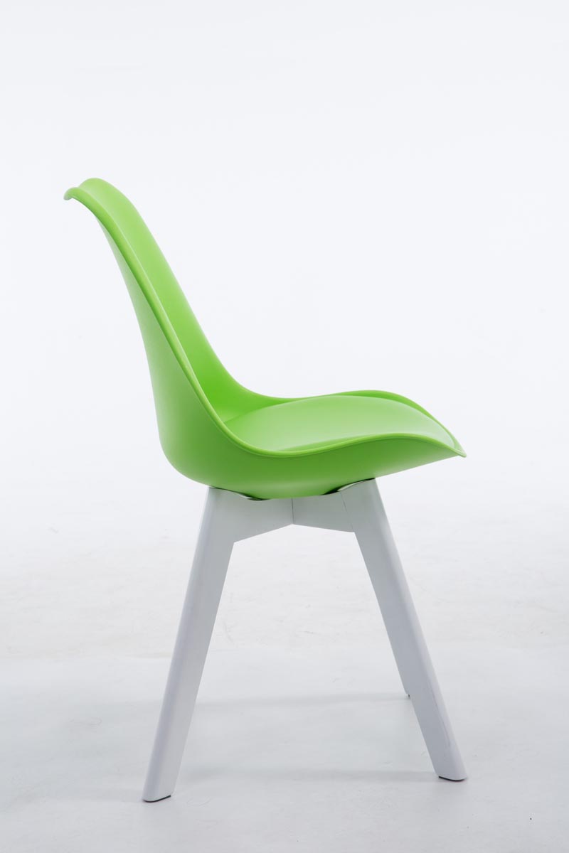Chaise de salle à manger x1 design scandinave en PVC et plastique vert et piètement à 4 pieds en bois blanc 10_0003307