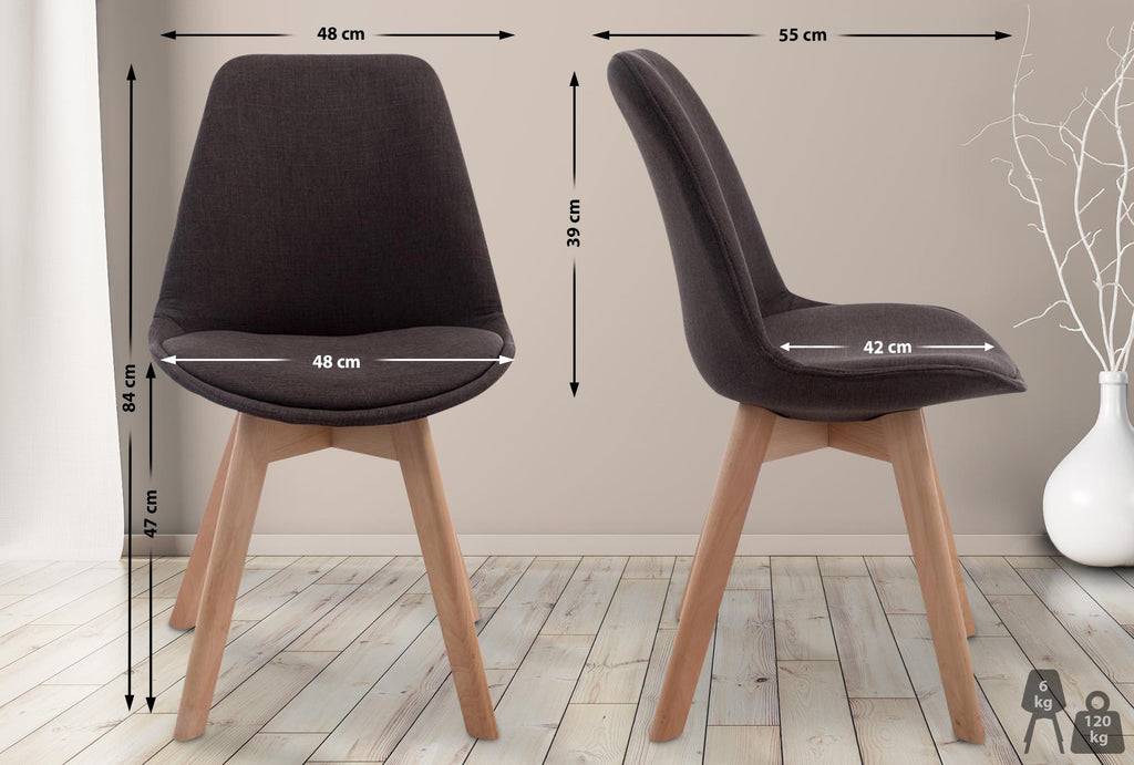 Chaise de salle à manger x1 design scandinave en tissu gris foncé et piètement à 4 pieds en bois clair 10_0003271