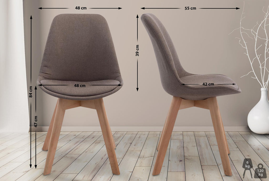 Chaise de salle à manger x1 design scandinave en tissu taupe et piètement à 4 pieds en bois clair 10_0003277