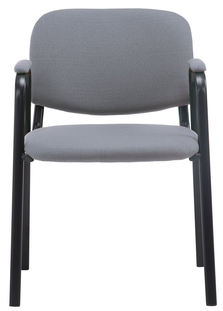 Chaise visiteur avec accoudoirs intégrés zone d'attente en tissu gris piètement à 4 pieds en métal noir 10_0003382