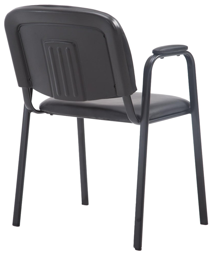 Chaise visiteur avec accoudoirs intégrés zone d'attente en PVC noir piètement à 4 pieds en métal noir 10_0003375