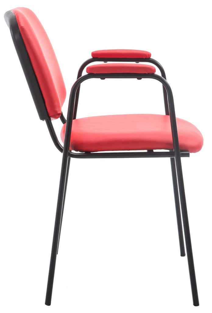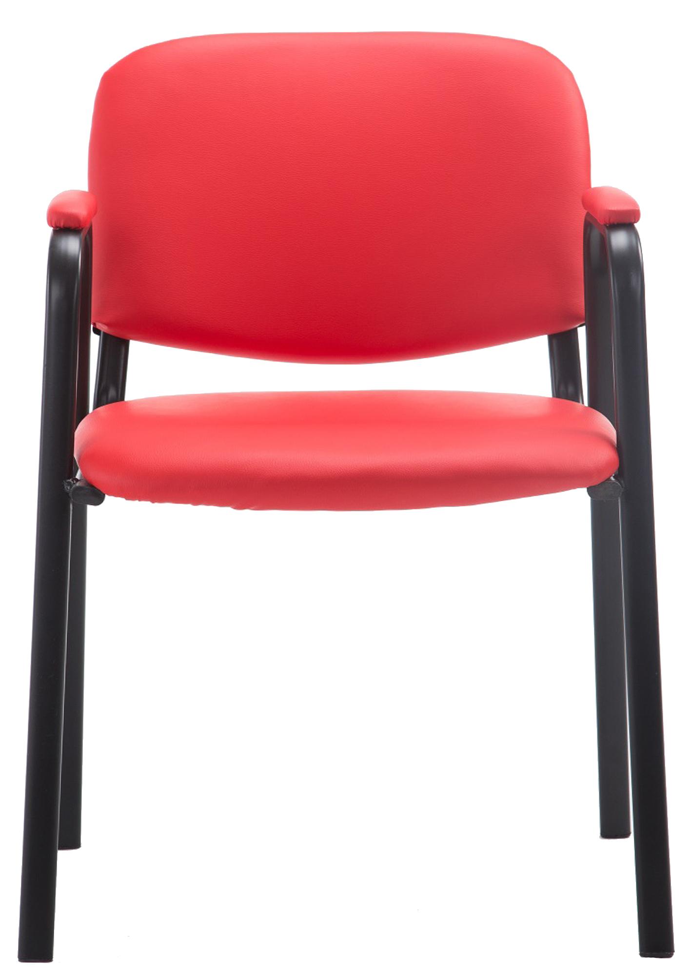 Chaise visiteur avec accoudoirs intégrés zone d'attente en PVC rouge piètement à 4 pieds en métal noir 10_0003378