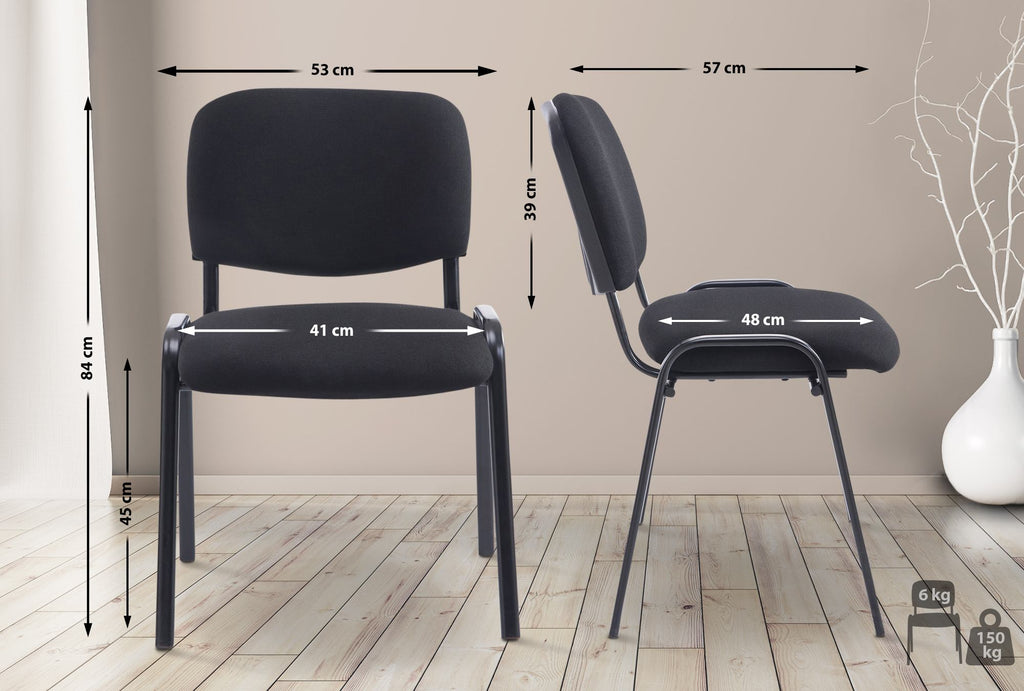 Chaise de bureau salle d'attente visiteur empilable confortablement rembourré en tissu et métal noir 10_0001905