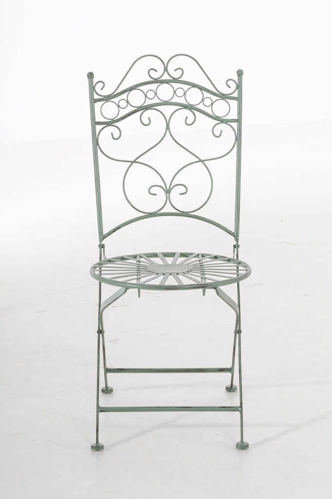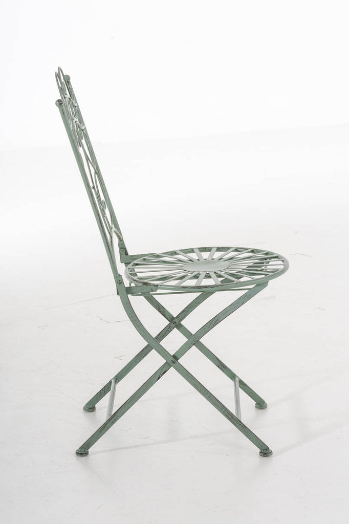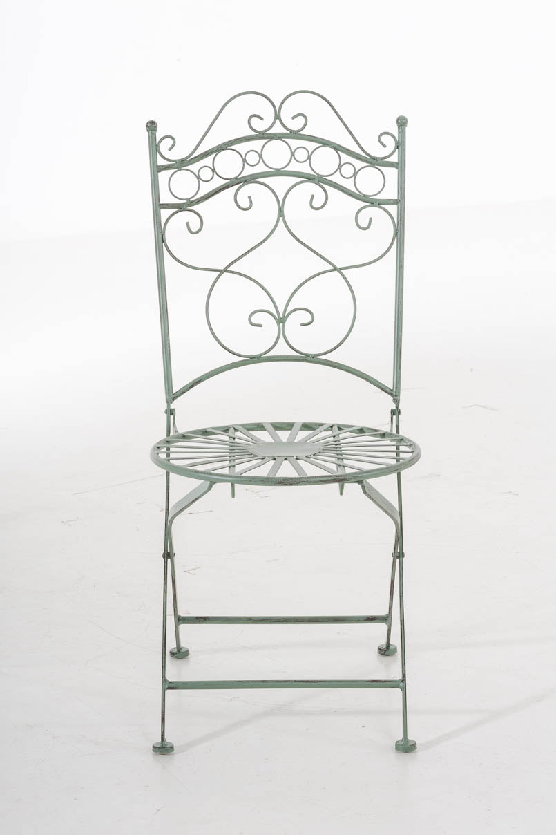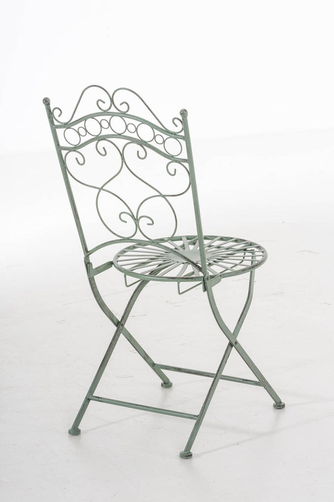 Chaise de jardin terrasse balcon design rustique en fer forgé vert vieilli 10_0003008