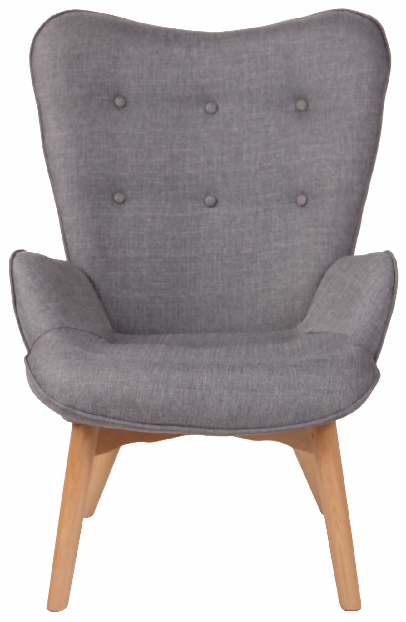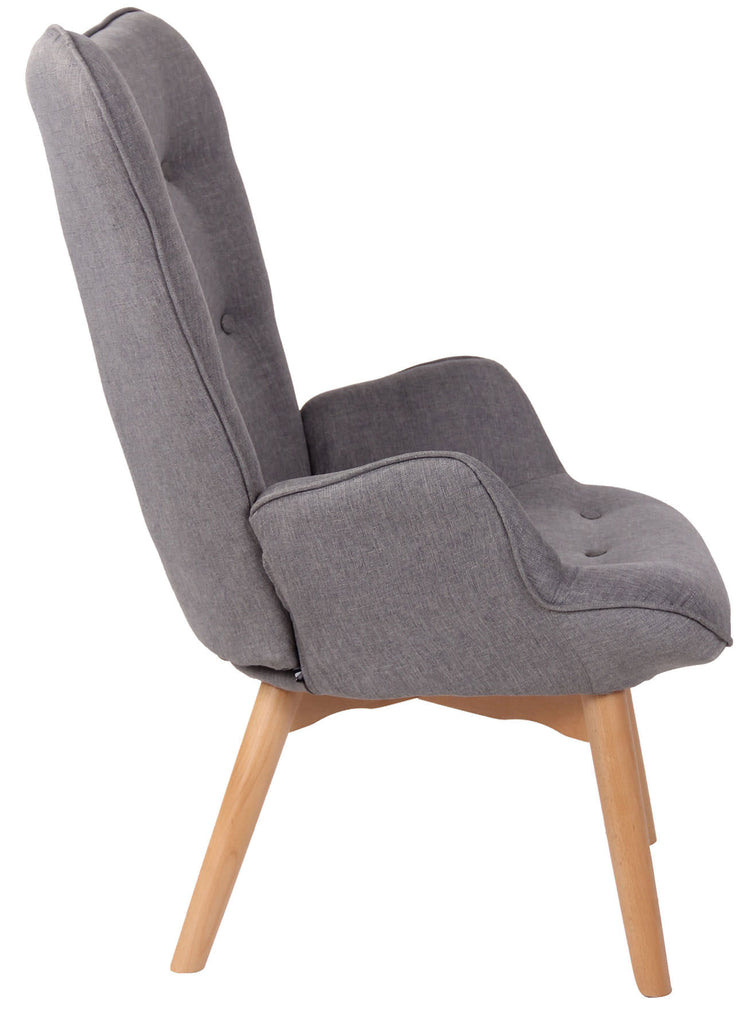 Fauteuil lounge style scandinave dossier haut boutons décoratifs en tissu gris pieds en bois clair 10_0003602