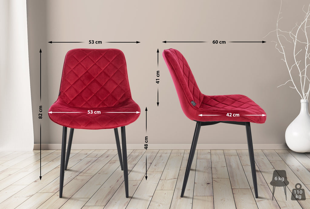 Chaise de salle à manger cuisine x1 assise en velours rouge et pieds en métal noir 10_0001491