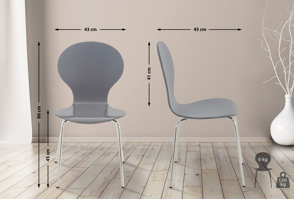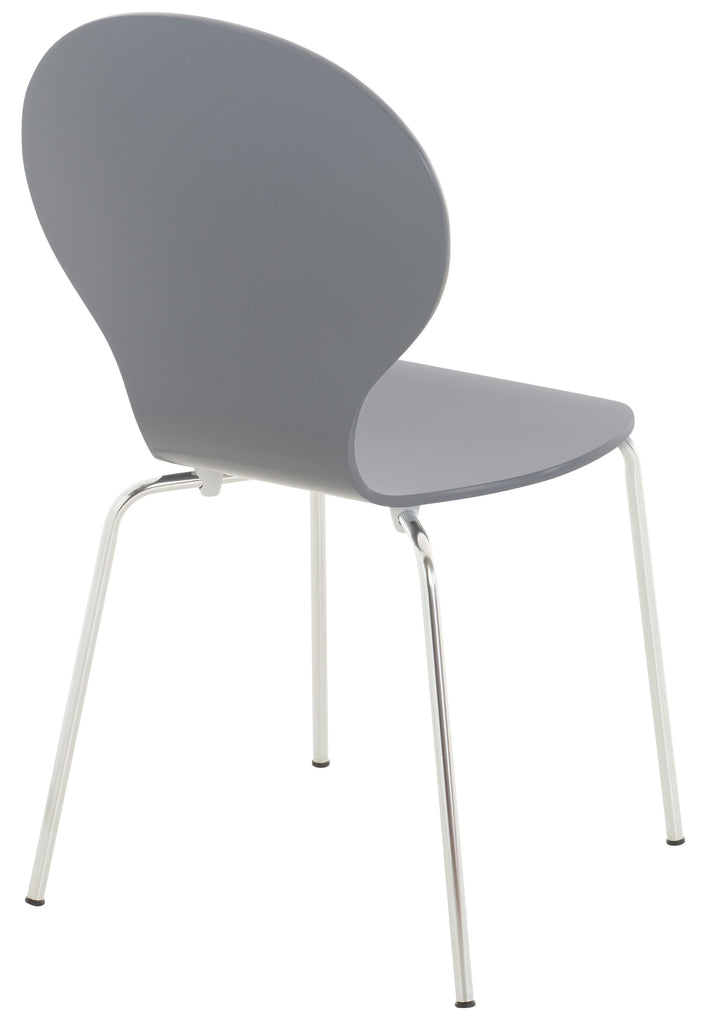 Chaise de cuisine salle à manger x1 empilable dossier arrondi en bois gris et métal chromé 10_0003346