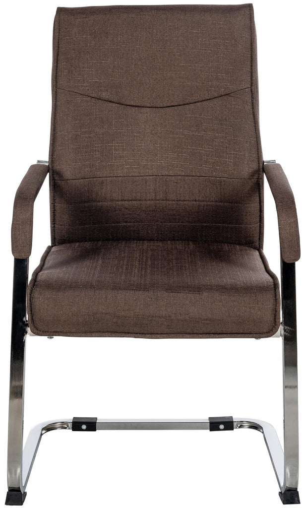 Fauteuil de bureau chaise visiteur sans roulettes piétement luge en métal chromé et assise en tissu marron 10_0003357