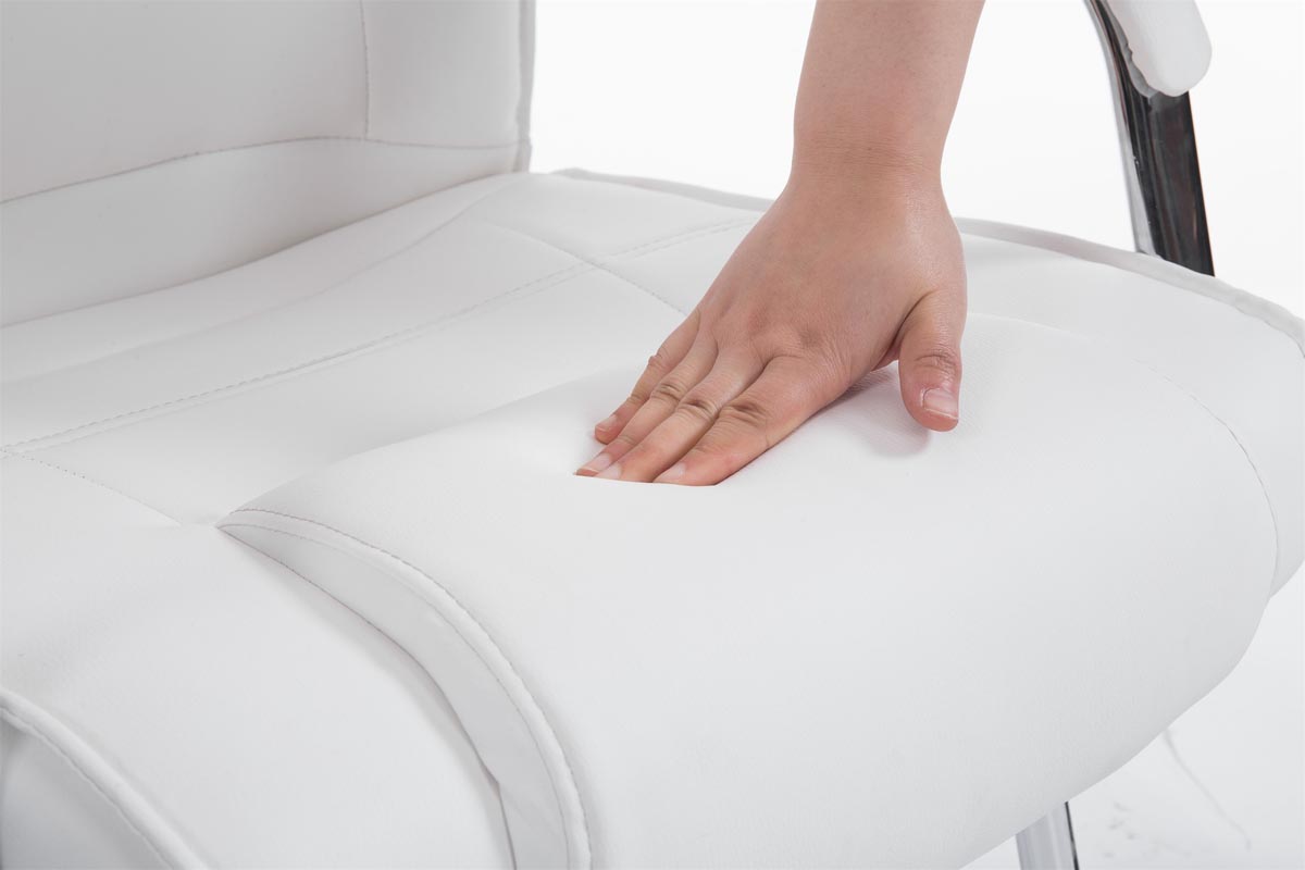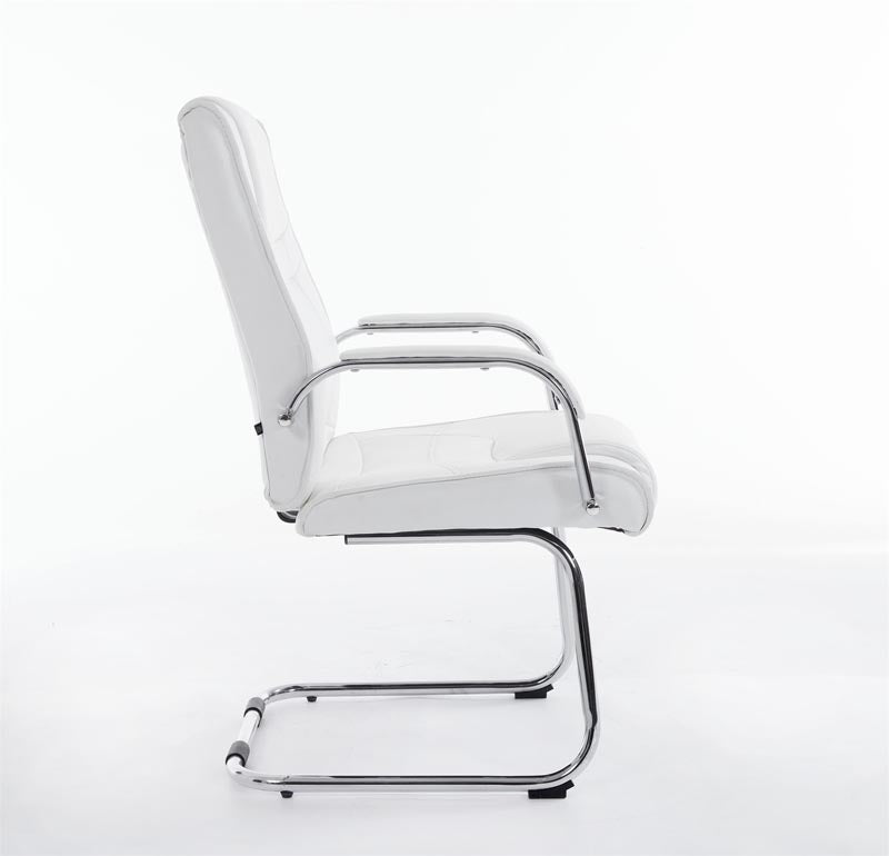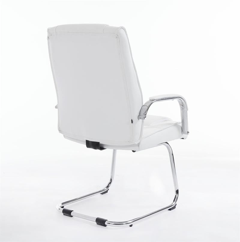 Fauteuil de bureau sans roulettes accoudoirs chaise visiteur charge maximale 180 kg en PVC blanc cadre en métal 10_0003249