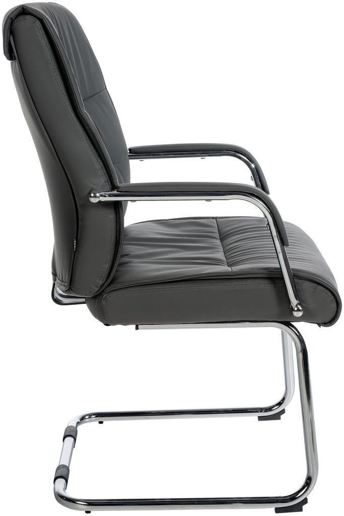 Fauteuil de bureau visiteur avec accoudoirs ergonomique en similicuir gris structure en métal chromé 10_0007605