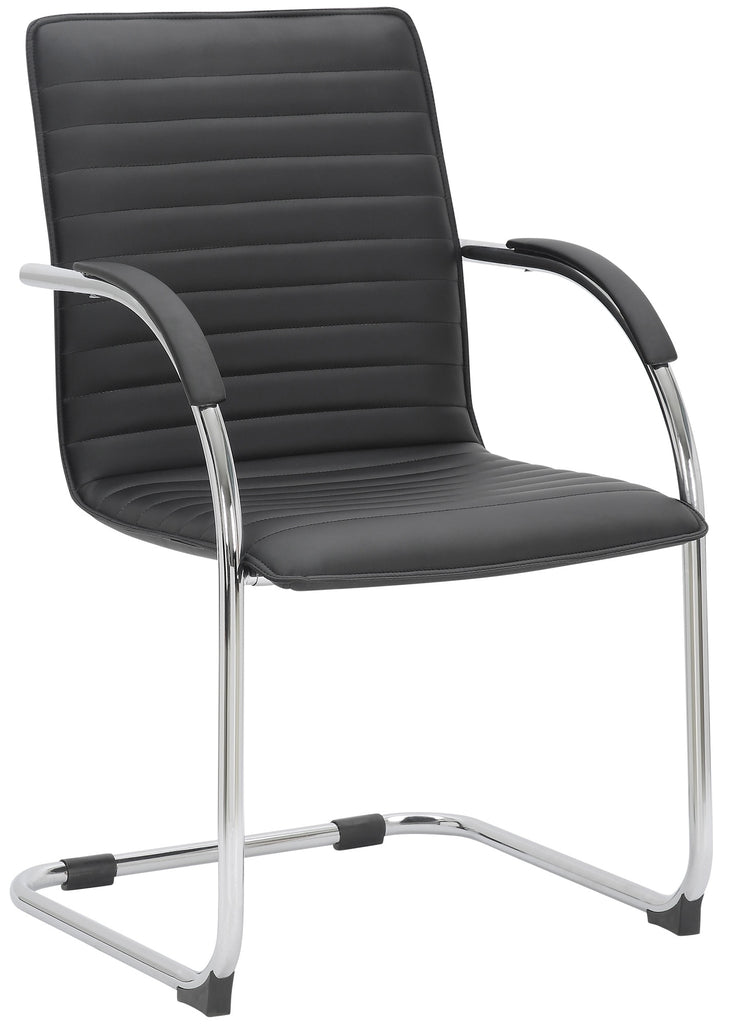 Chaise visiteur fauteuil de bureau avec accoudoirs assise en PVC noir piètement luge métallique 10_0003420