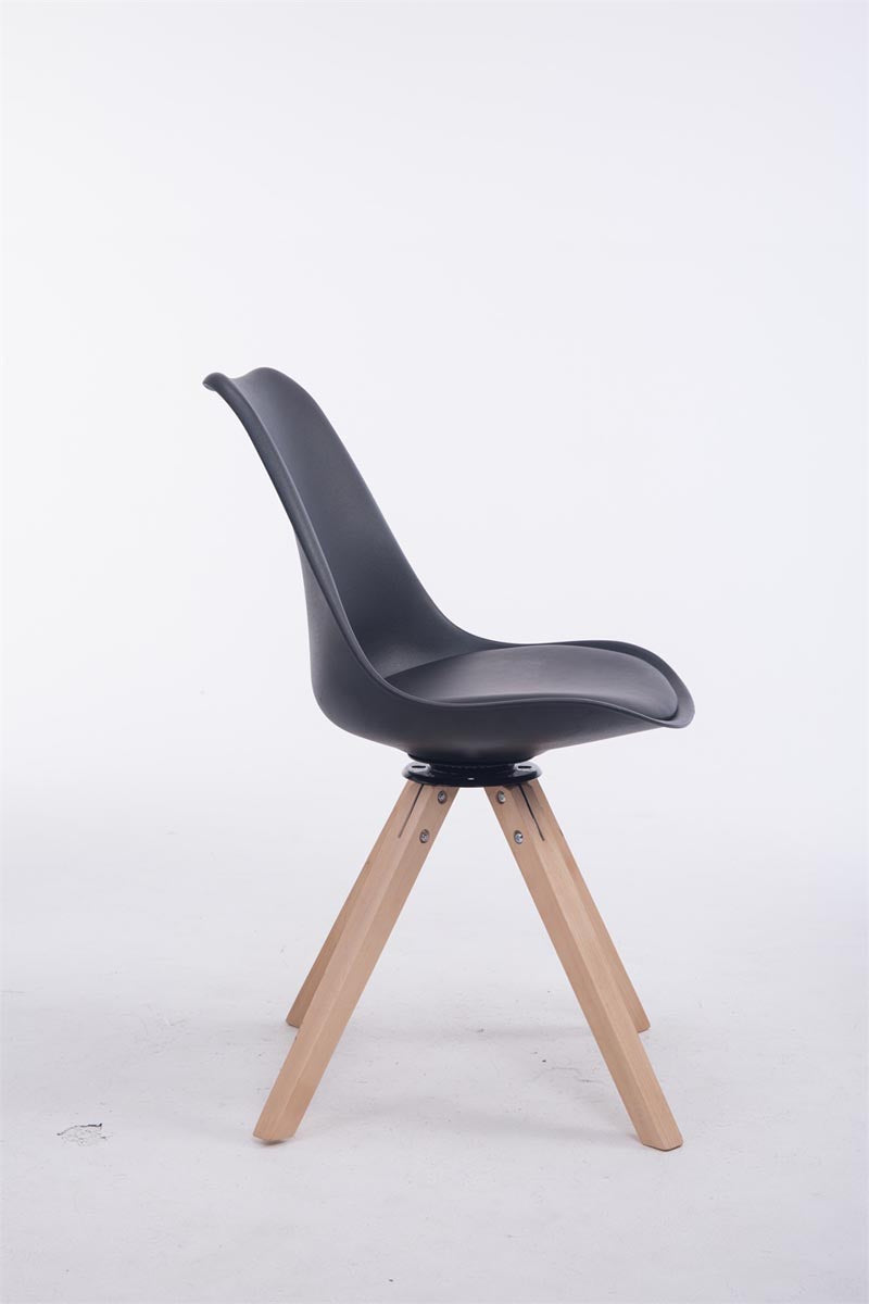 Chaise de salle à manger x1 chaise visiteur assise pivotant à 360° en PVC et plastique noir piètement en bois carré clair 10_0003470