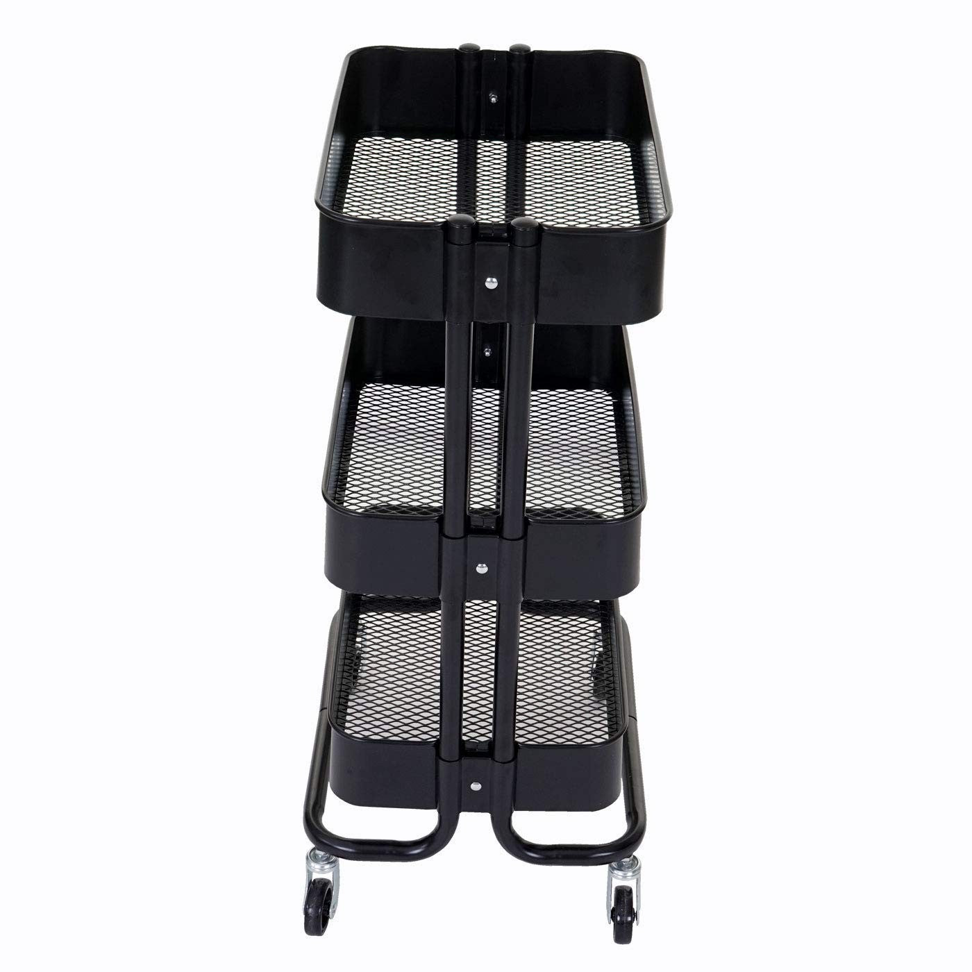 Chariot de cuisine en métal noir sur roulettes avec 3 paniers de rangement ETA04048